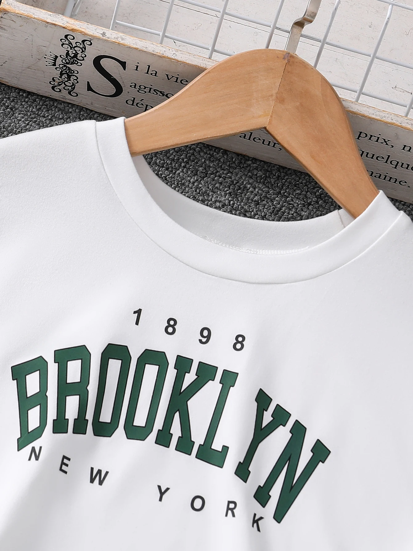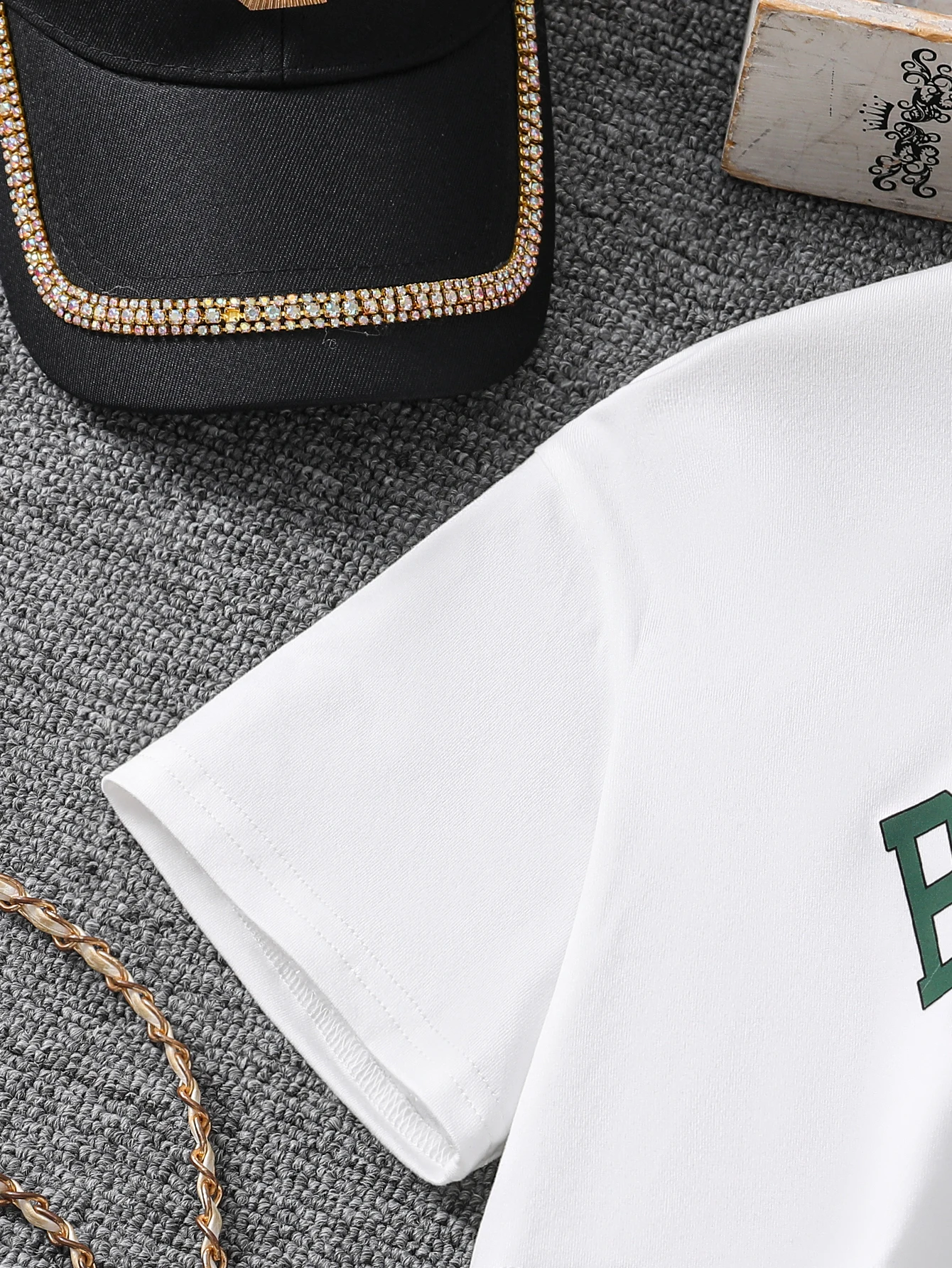 Spring/summer children’s fashion trend Girls Athleisure basic three-piece letter print T-shirt Solid color halter vest sweatpant