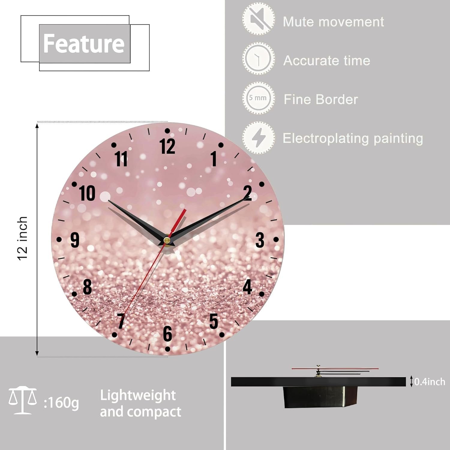 Silent Non Ticking Wall Clock: Completely quiet with no noises nor “Ticking”. This silent wall clock won’t bother you when you are readings, working, thinking, conversing or sleeping. Precise battery operated quartz sweep movement ensures reliable and accurate time