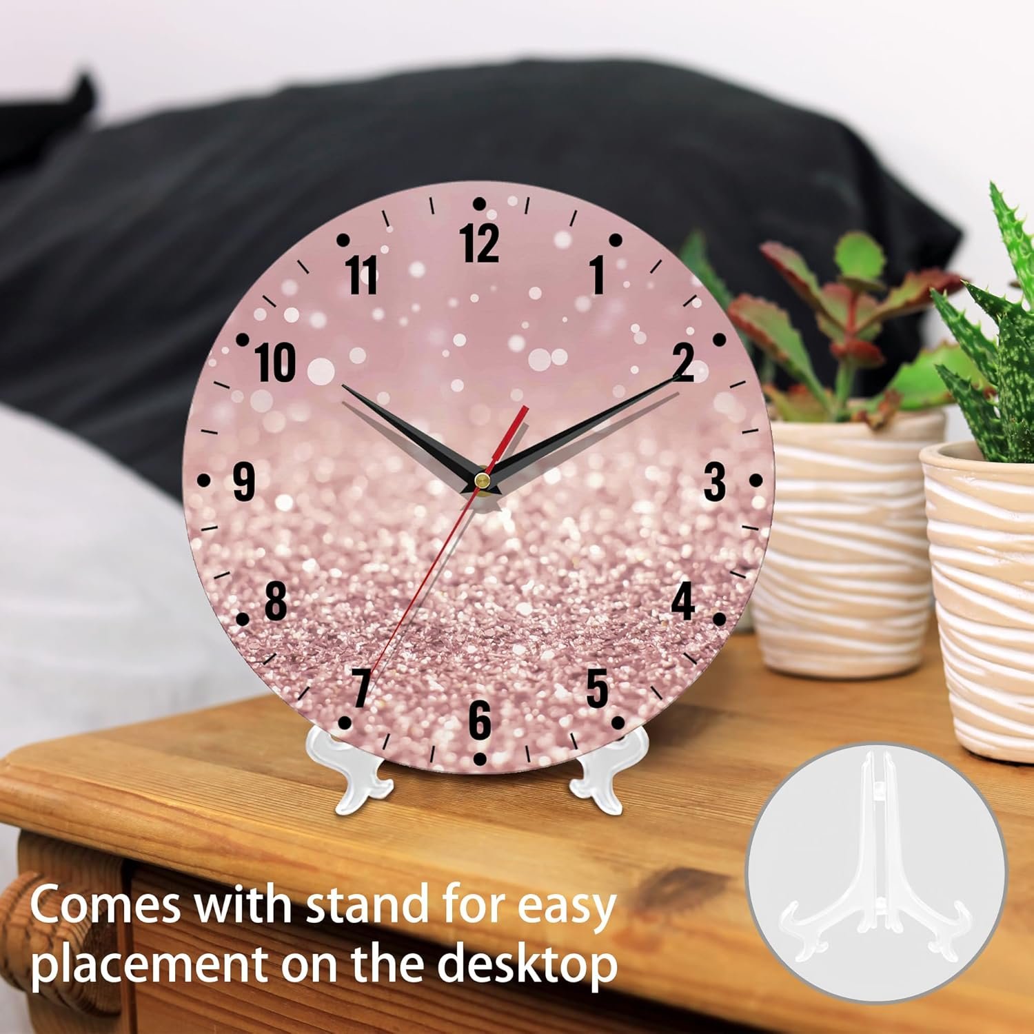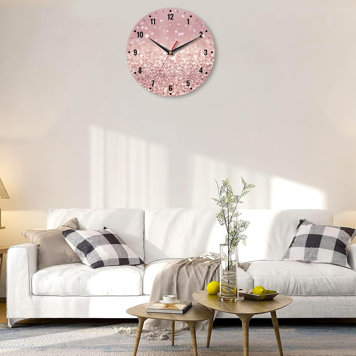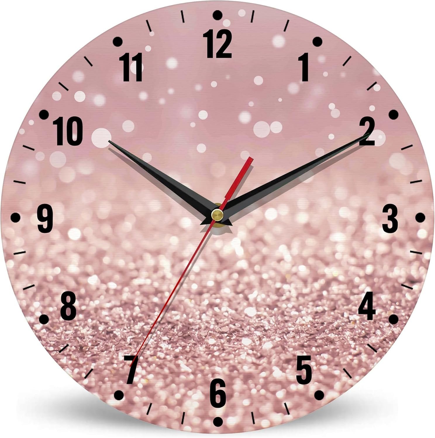 SPUNKER Clocks for Living Room,Rose Gold Glitter Kitchen Wall Clock,Abstract Clocks 10 Inch Silent Non-Ticking Wall Battery Operated for Living Room Bedroom Bathroom Laundry Room Decor