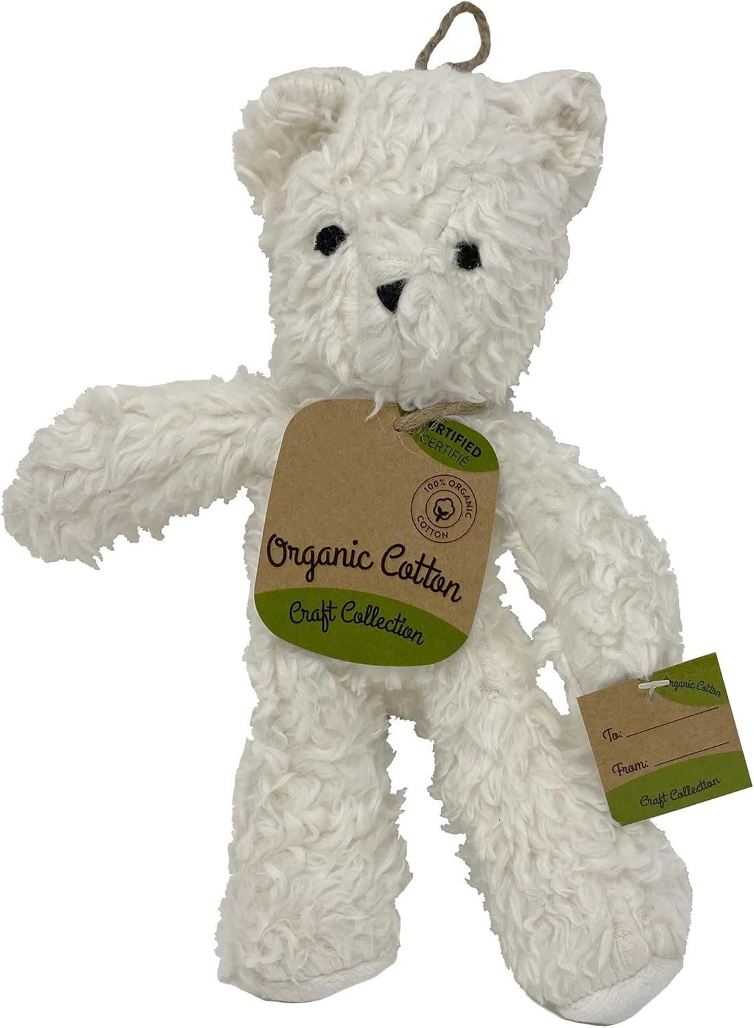 SAFE AND DURABLE: Committed to products made from natural materials, the toy is constructed from organic cotton. Eco-friendly and safe, the bear toy is made using all natural vegetable dyes and filled with a natural coconut husk filling.