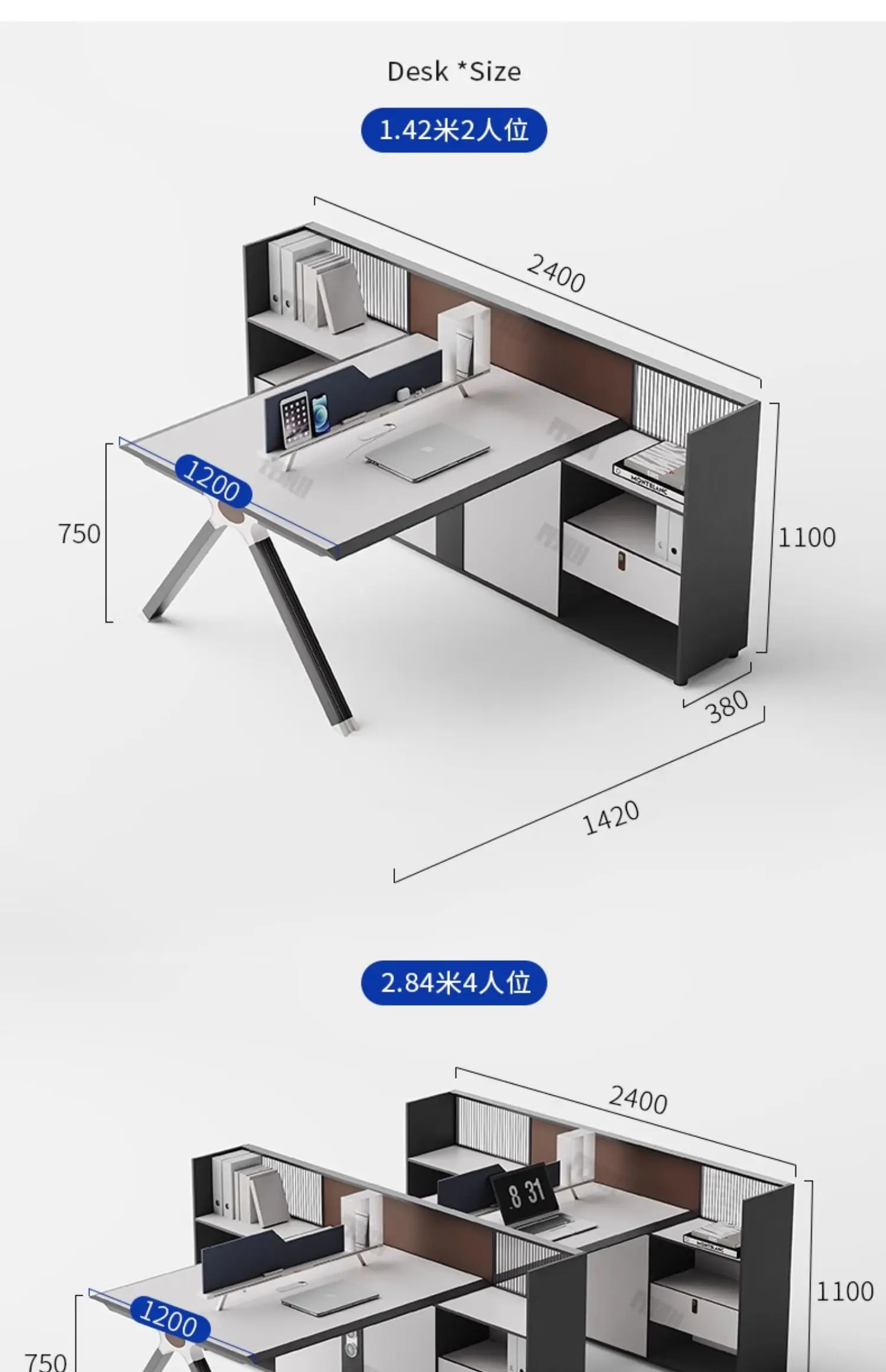 Staff desk, workstation screen, four-person booth, financial partition, office desk and chair combination