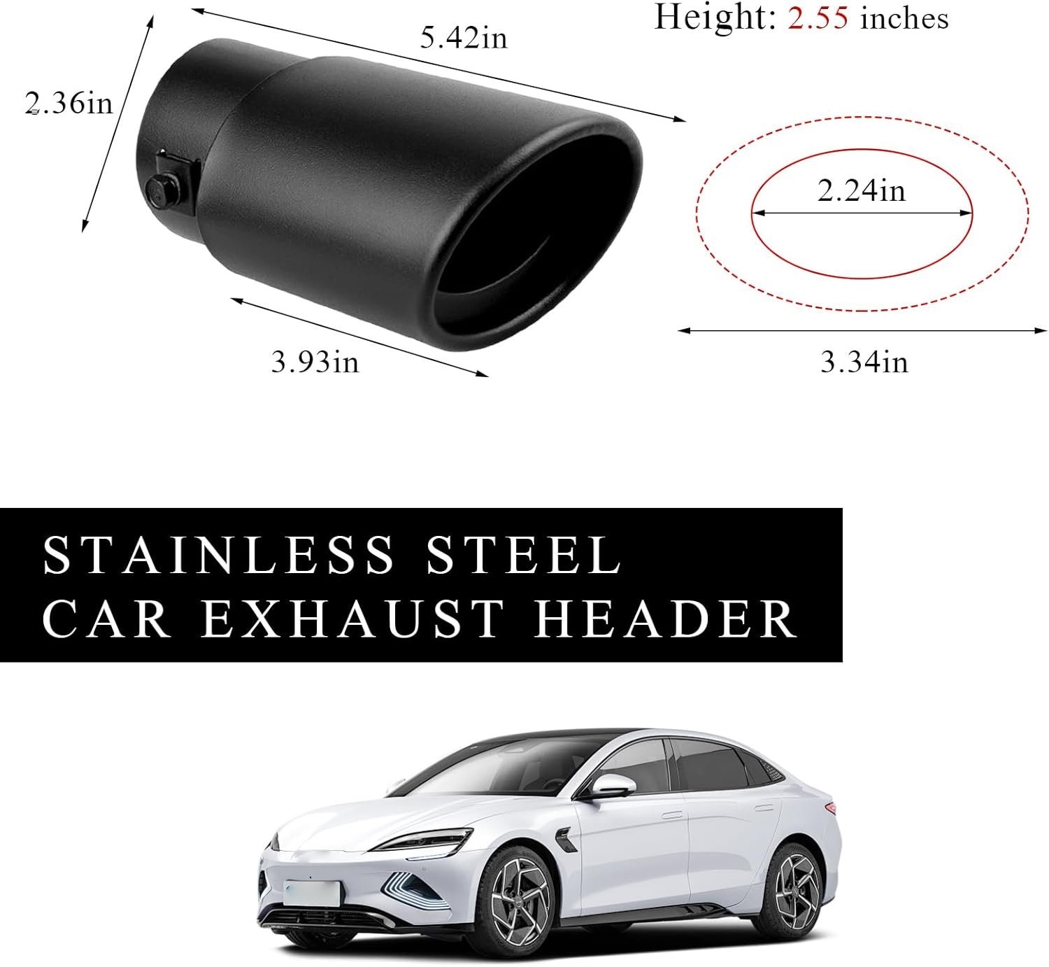 【Universal Size】: Our exhaust tips measure 2.5″ × 3.3″ × 5.4″. For all exhaust tips, if the outlet size is 1.5-2.25″, this tip will fit regardless of the year/make/model of your car. Please measure the diameter of your exhaust tip before purchasing.