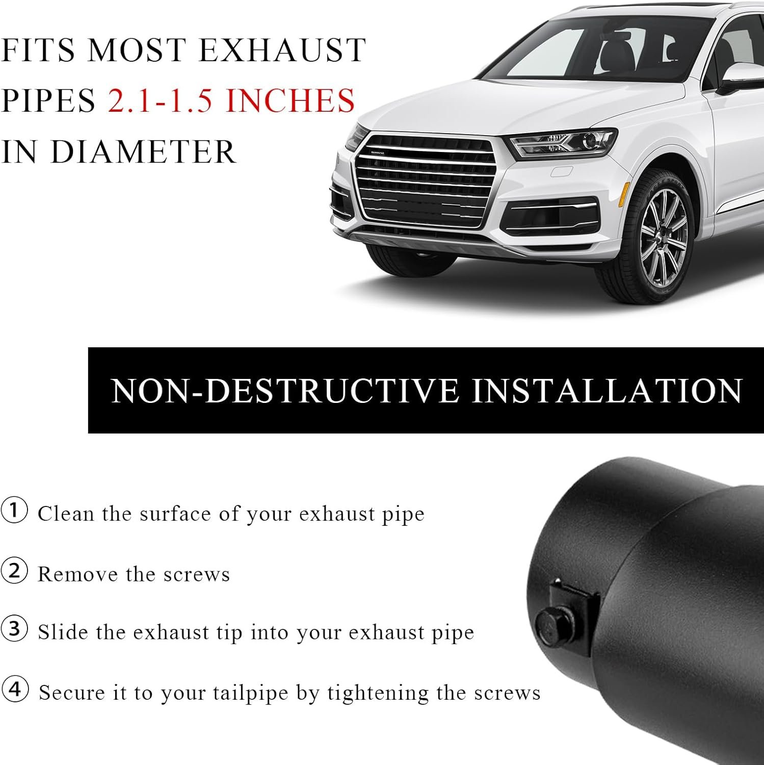 【Easy to Install】: The exhaust tailpipe is easy to install, loosen the screws on the tailpipe and place the tailpipe in the proper position at the tail of the car exhaust pipe, and then tighten the screws with a wrench. There is no need to replace any parts, no need to weld, no need to drill. It’s super easy to install and takes just 5 minutes to complete.