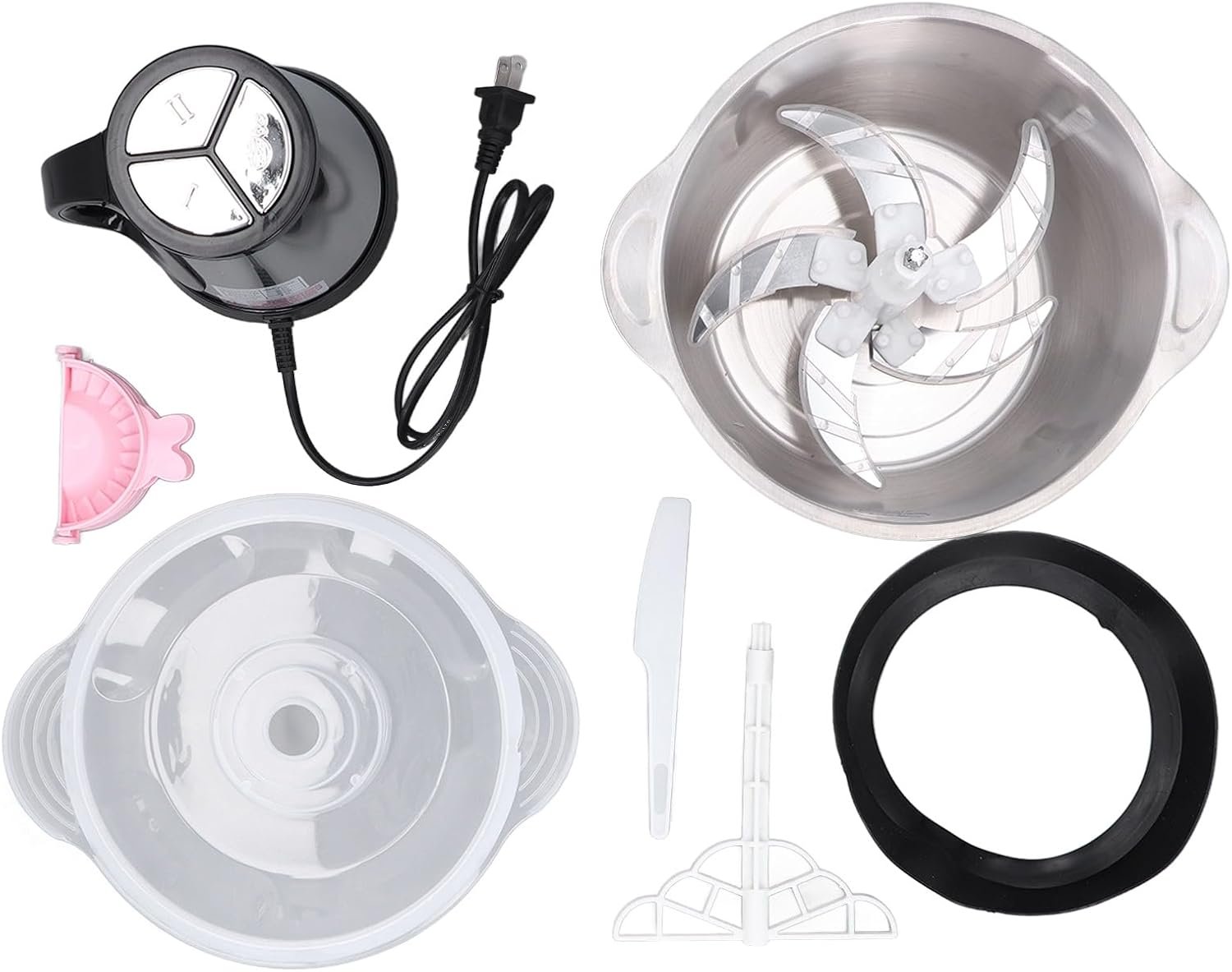 Stainless Steel Food Processor with 4L Large Capacity, 5 Blades, Electric Chopper for Meat Vegetable US Plug 110V, High Efficiency, Material