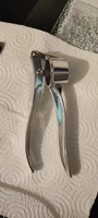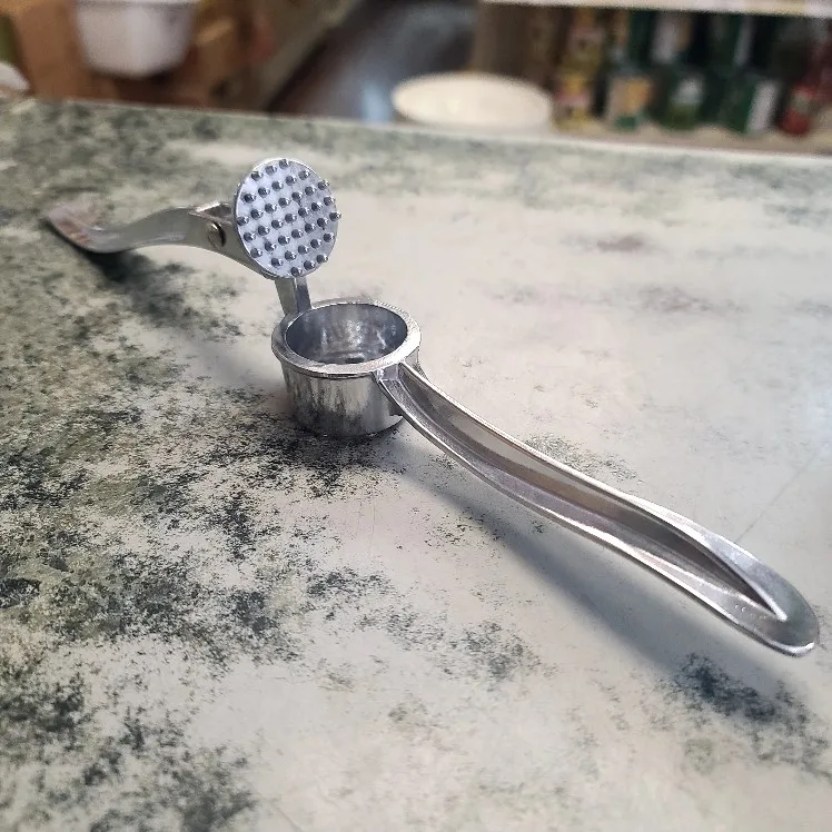 This garlic press works great. I like that. It’s one single piece and doesn’t have a removable basket. It makes it more convenient to use. It’s a good garlic press and , better than the one i used to use.