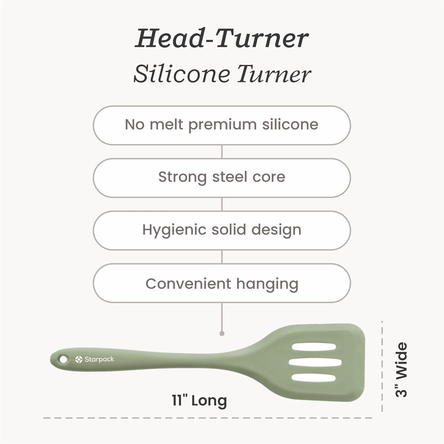 Starpack ‘Head Turner’ Premium Silicone Turner Spatula, Slotted Spatula – Up-to 600°F High Heat Resistant Silicone Slotted Spatulas for Cooking, LFGB Grade Non Stick Rubber Turner Spatula – 10″