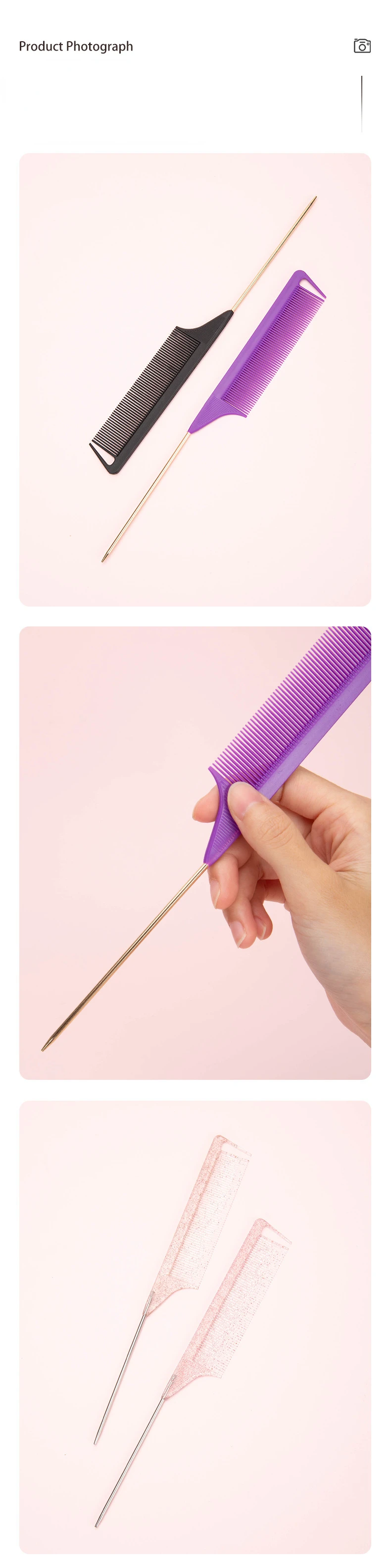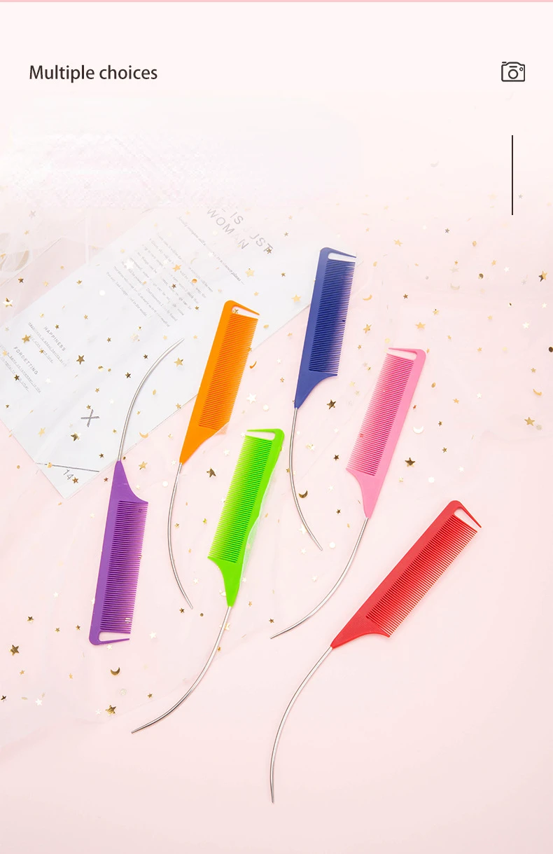 Steel Needle Professional Styling Plastic Heat Resistant Anti-Static Braiding Rat Tail Curved Parting Comb Barber Accessories