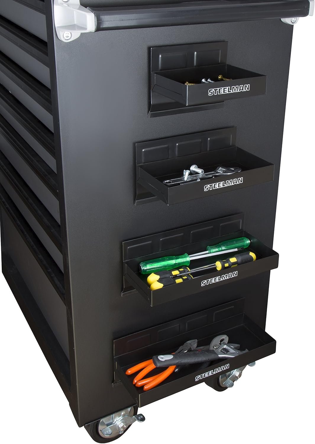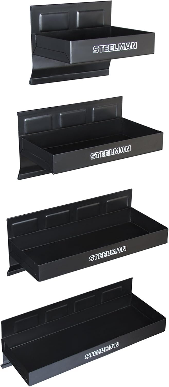Steelman Non-Marring Magnetic Tool/Parts Storage Trays for Rolling Toolboxes, Durable Steel, 4-Piece Set