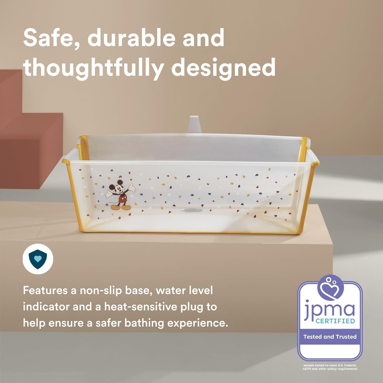 Stokke Flexi Bath X-Large, Mickey Celebration – 31.5 x 15.7 x 9.4 in – Best for Infants & Toddlers – Lightweight, Foldable & Easy to Store – Convenient to Use at Home or Traveling