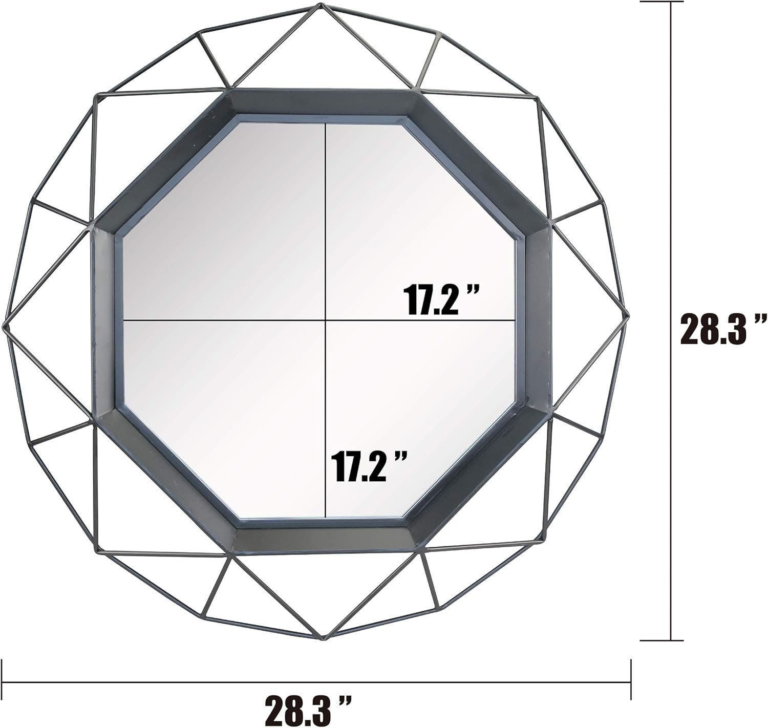 Stonebriar Decorative Black 28.3″ Geometric Metal Wire Frame Hanging Wall Mirror with Mounting Brackets, Modern Decor for the Living Room, Bedroom, Bathroom, Hallway, and Entryway