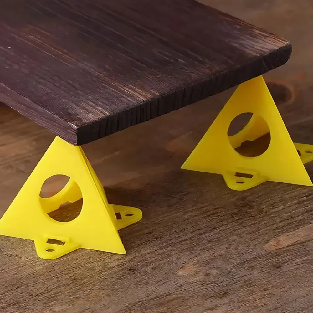 ã€Sturdy Support】These painting stands offer stable and reliable support for your woodworking projects, keeping your workpieces elevated during painting or finishing. ã€Triangular Design】The triangular shape ensures balance and stability, preventing tipping or movement while working on your projects. ã€Mini and Portable】Compact in size, these paint stands are convenient to carry and use, suitable for various woodworking tasks in workshops or DIY projects. ã€Quality Materials】Crafted with durable materials, these painting stands are designed for long-term use and can withstand the rigors of woodworking. Versatile Usage: Perfect for elevating and supporting various woodwork pieces such as furniture components, small projects, or intricate details during painting or finishing. Specification: Color: yellow Material: ABS Size: 6*4.5cm Packing list: 10PC * stand