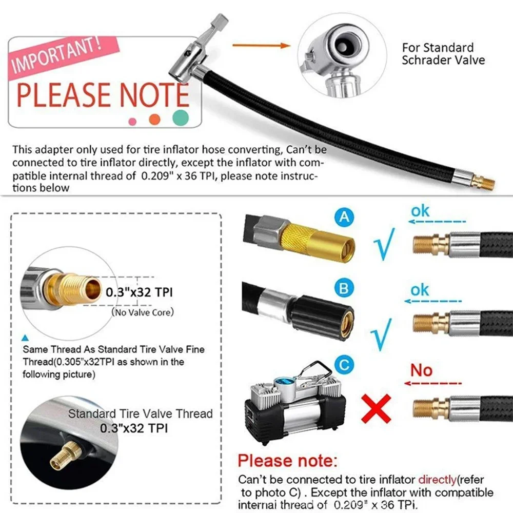 2. The air pump extension hose is an extension of the tire valve nozzle, making the tire inflation process easier.