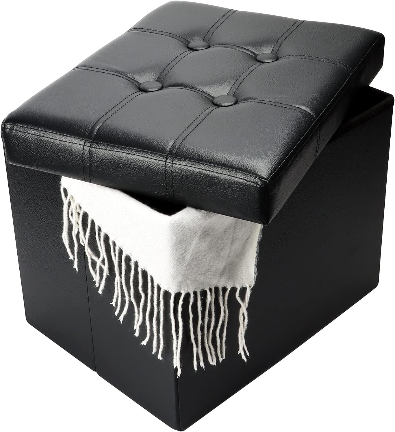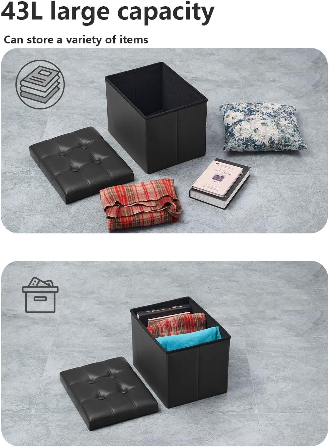 Storage Ottoman, Folding Foot Stool with Thicker Foam Padded Seat Small Leather Storage Ottoman Bench Foot Rest for Living Room Foldable Coffee Table 17x13x13in,Black