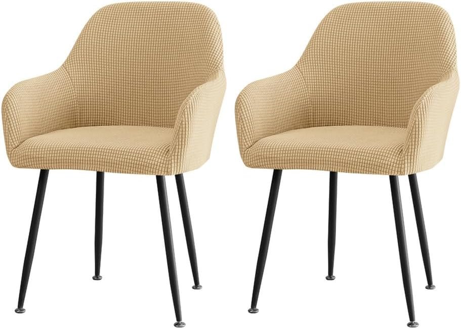 Stretch Curved Back Dining Chair Covers with Arms, Elastic Office Chair Slipcovers, Swivel Armchair Cover Protector for Living Room Bedroom Home Decor,Khaki 2pcs