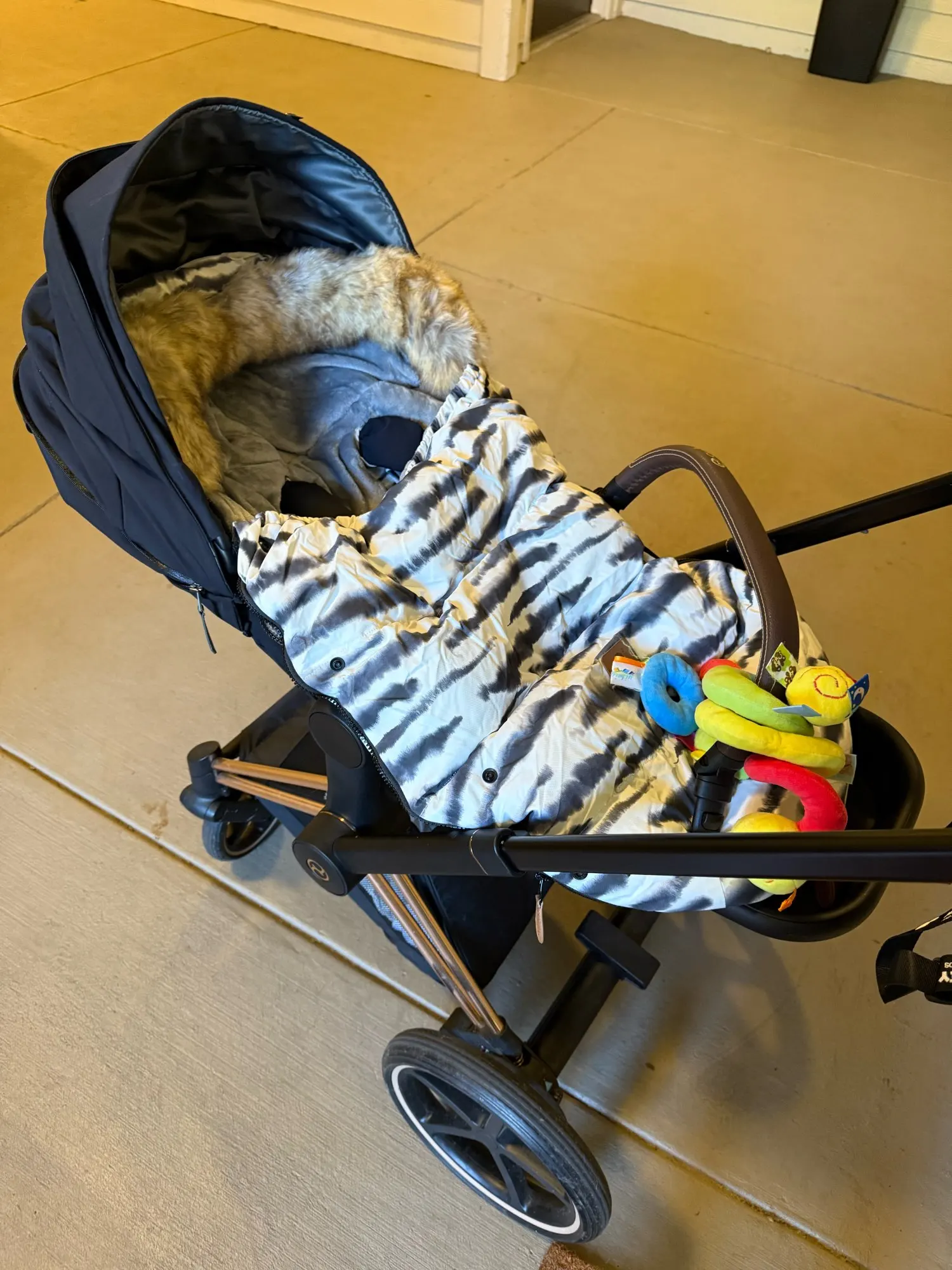 Very comfortable winter cover. High-quality material, lock and buttons work. Fits the cybex stroller without any problems. My child is very comfortable sleeping in it. Insulated with synthetic winterizer and the inner fabric is velor.