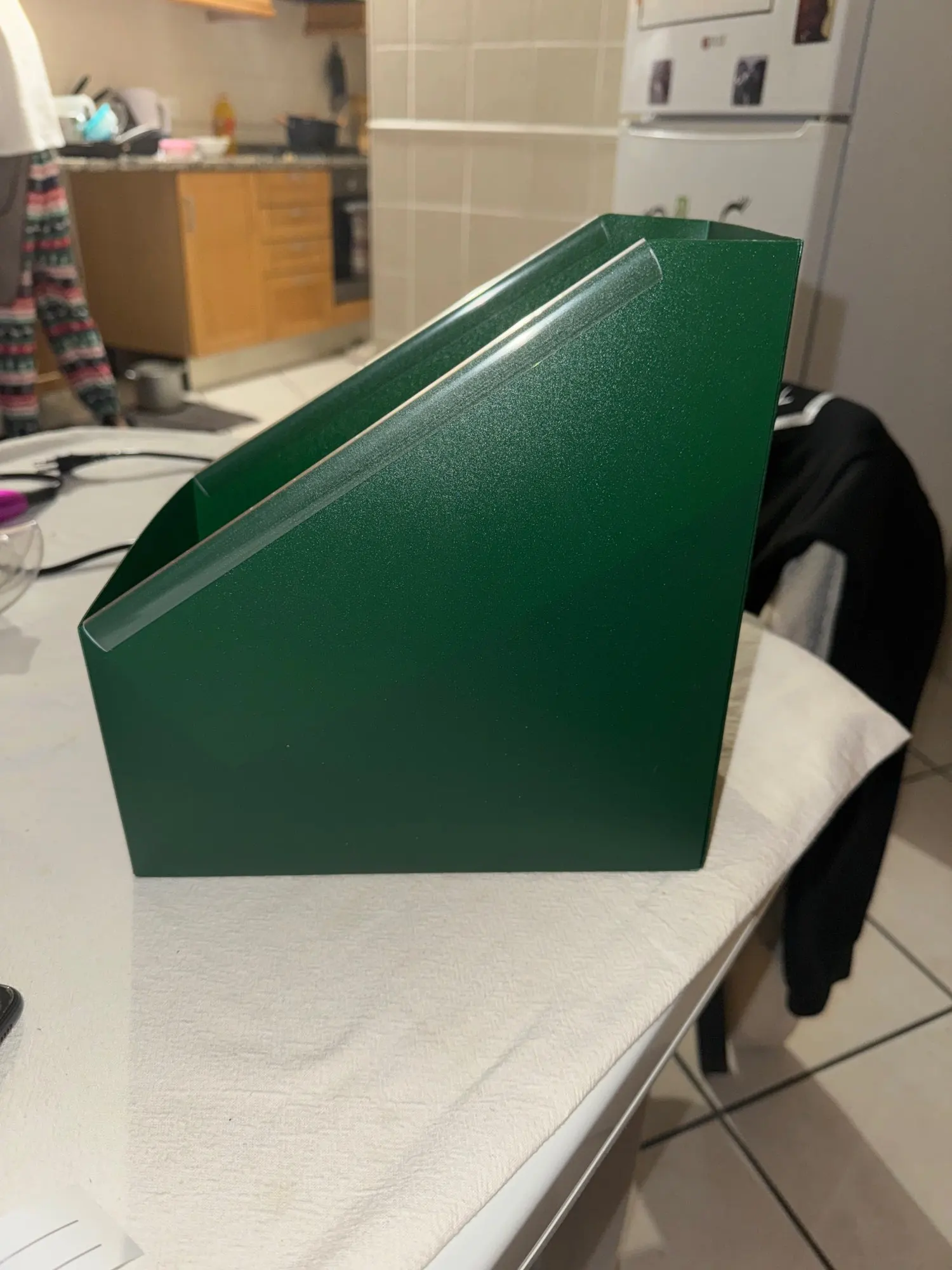 It looks like plastic from afar, but it has quite a capacity and fulfills its purpose.