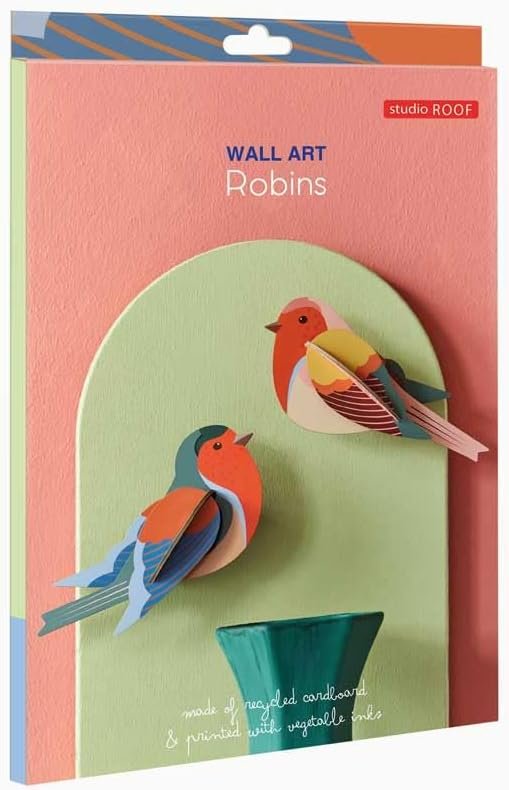 Bring the beauty of nature into your home with this charming Robins 3D wall art by Studio ROOF. Inspired by the delicate elegance of garden birds, these vibrant decorative pieces are made from recycled cardboard and printed with vegetable-based inks, making them an eco-conscious choice for any space. Easy to assemble, the Robins is perfect for both kids and adults, providing a fun, creative activity that sparks the imagination. Designed to be hung as striking wall art, these garden bird add a playful yet sophisticated touch to your decor. Founded in Amsterdam, Studio ROOF creates sustainable art pieces that combine nature’s inspiration with modern design. The Robins makes for a unique gift or an eye-catching collectible, sure to add color and charm to any room.