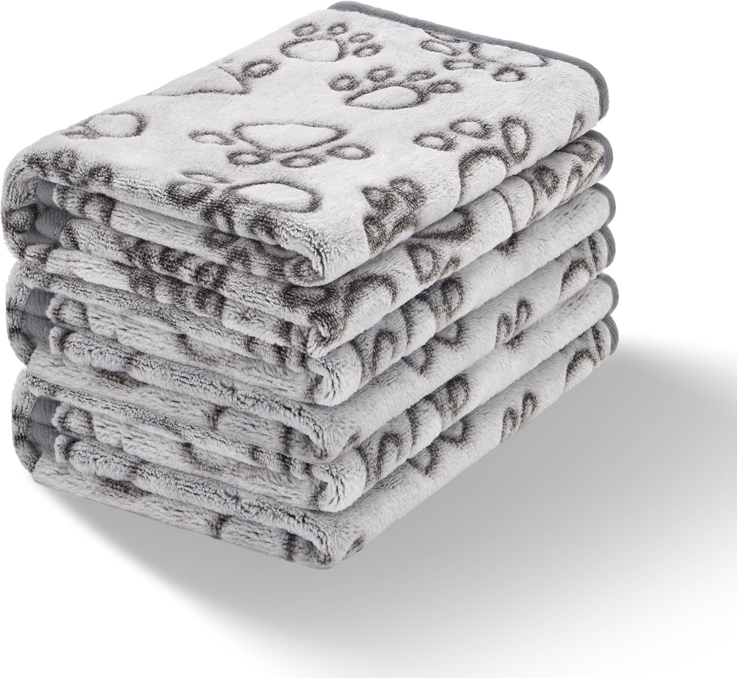 Stuffed 3 Pcs Soft Dog Blankets for Small Dogs, Washable Puppy Blanket for Cat Kitten Essentials, 24 * 16 Inches, Grey Cute Paw Print