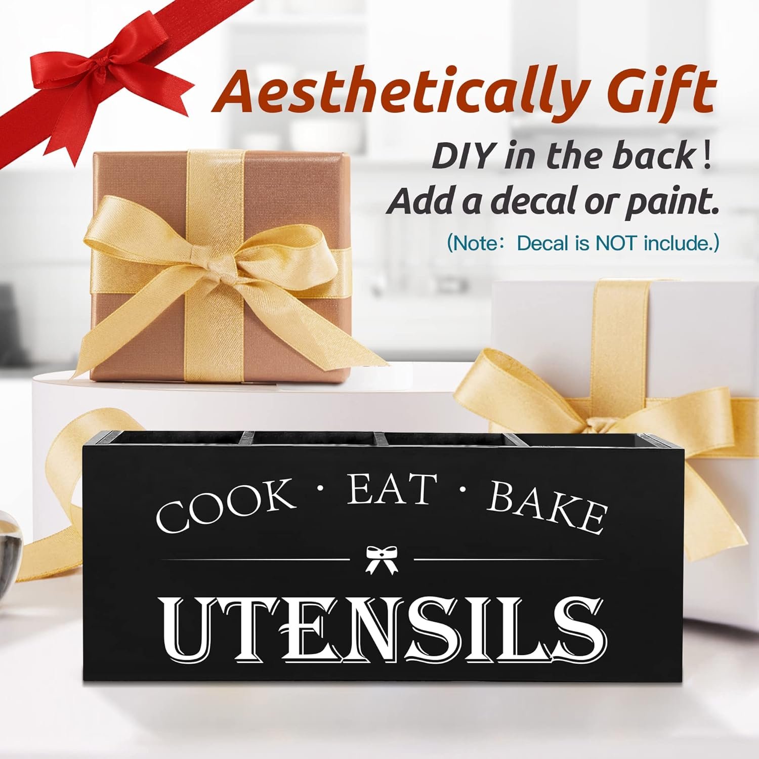 UPGRADE DIVIDER DESIGN – Our wooden utensil organizer has 4 compartments. Large, roomy and pretty. Easy to grab utensils. Size:15.74″L x 5.9″W x 7.08″H. You can store all of your cooking tools easily and neatly. The rectangular shape can fit in nicely against the wall. A nice kitchen decoration!