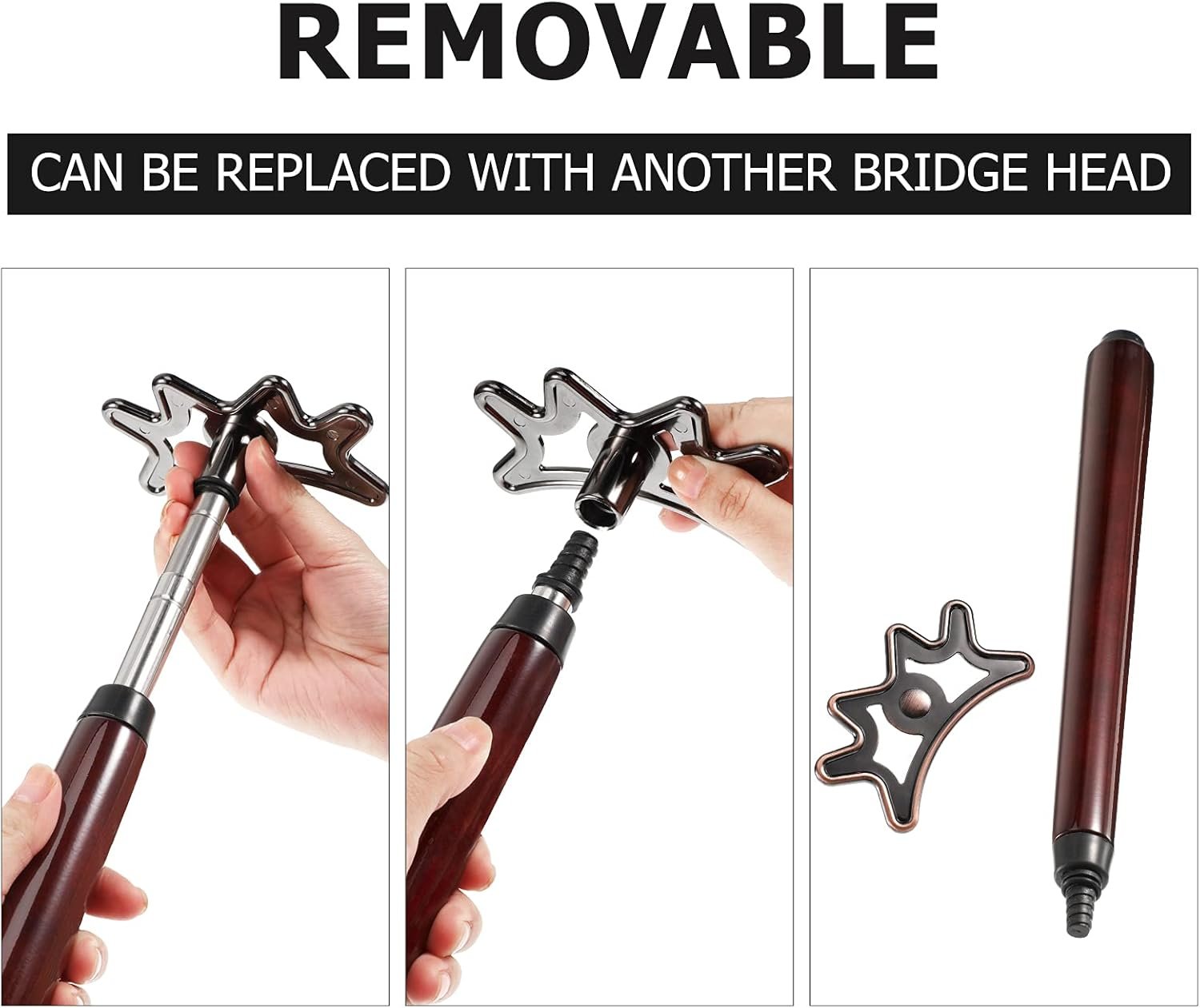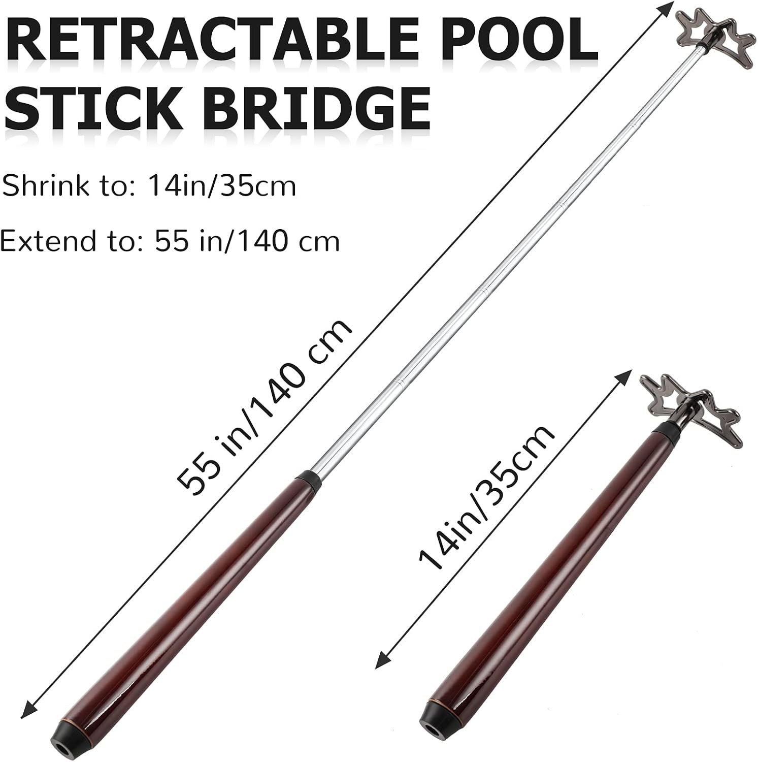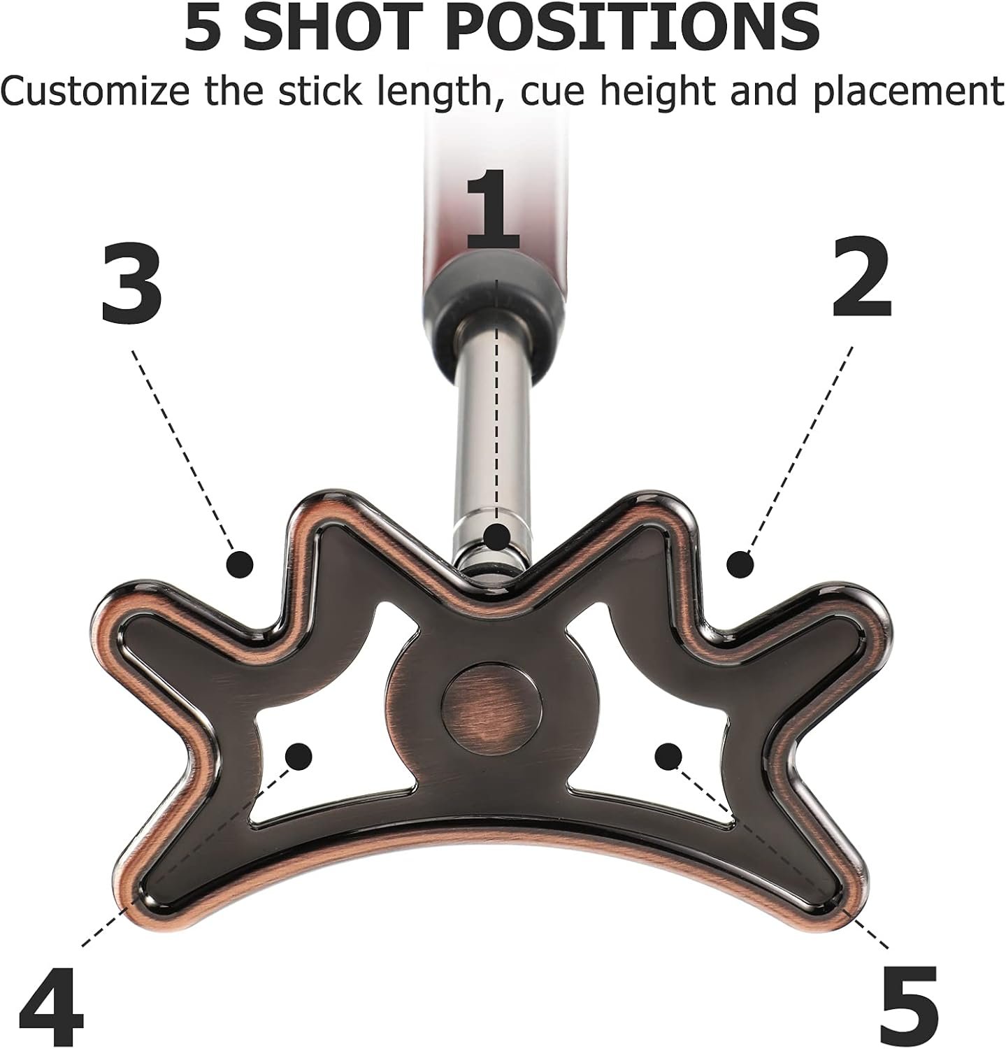 Provides 5 shot positions: the bridge head of retractable bridge stick can offer 5 shooting positions, allowing you to adjust the stick length, cue height and placement by yourself, thus you can play a nice shot easily