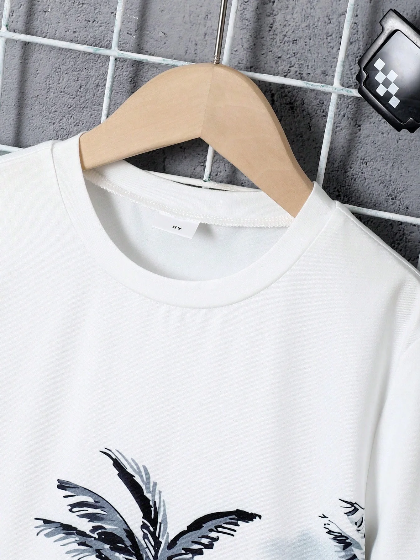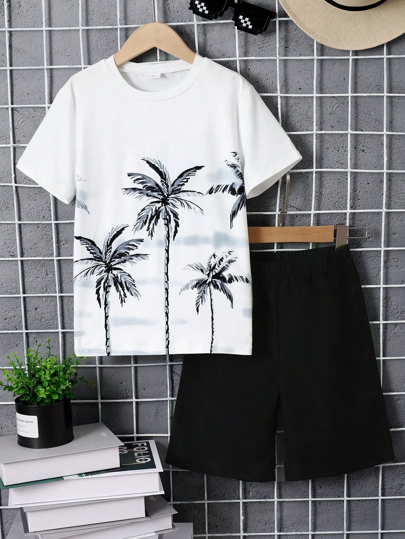 Summer 8-14 Year Old Boys Hawaiian Style Sportswear Breathable And Sweat Absorbing Short Sleeved Sports Style Set