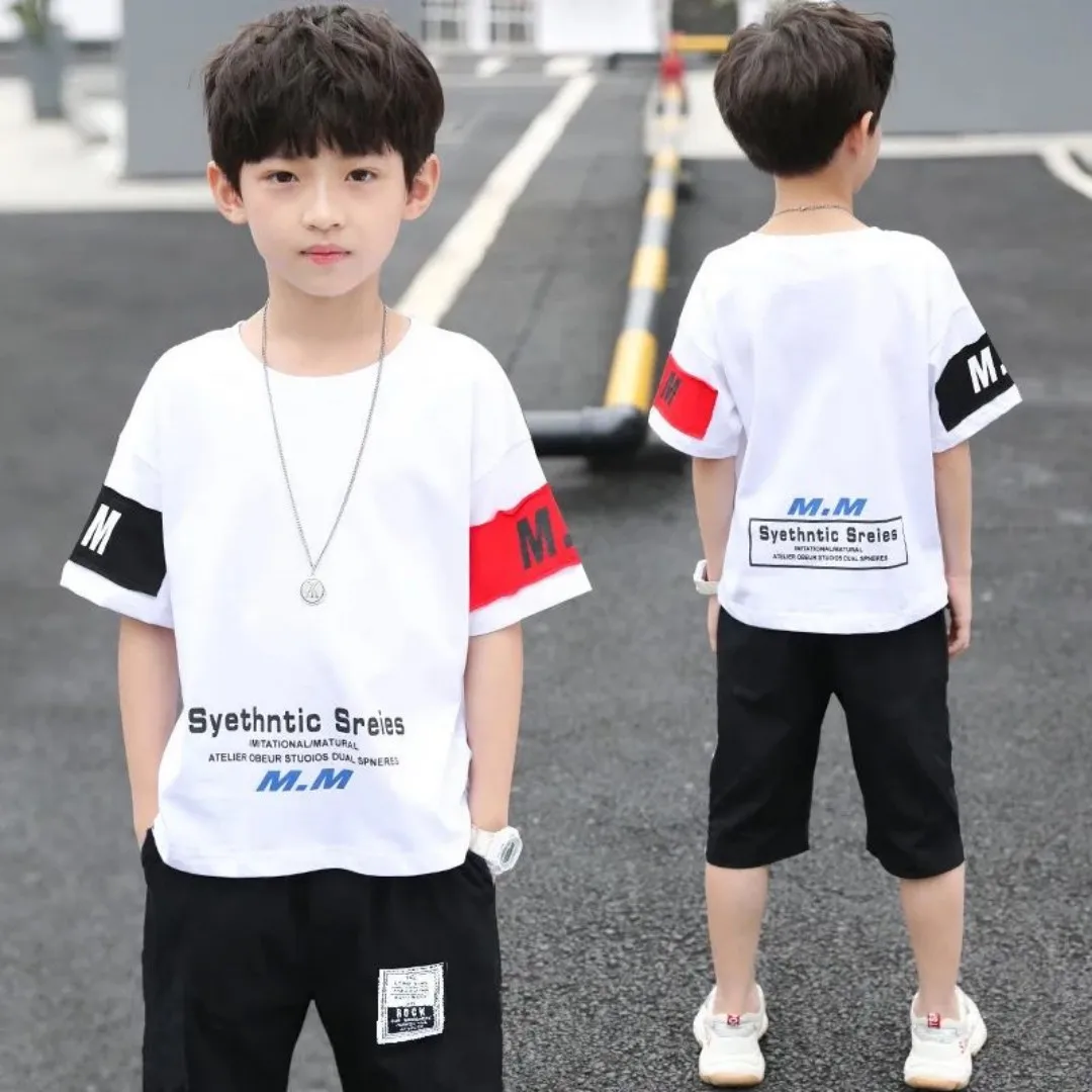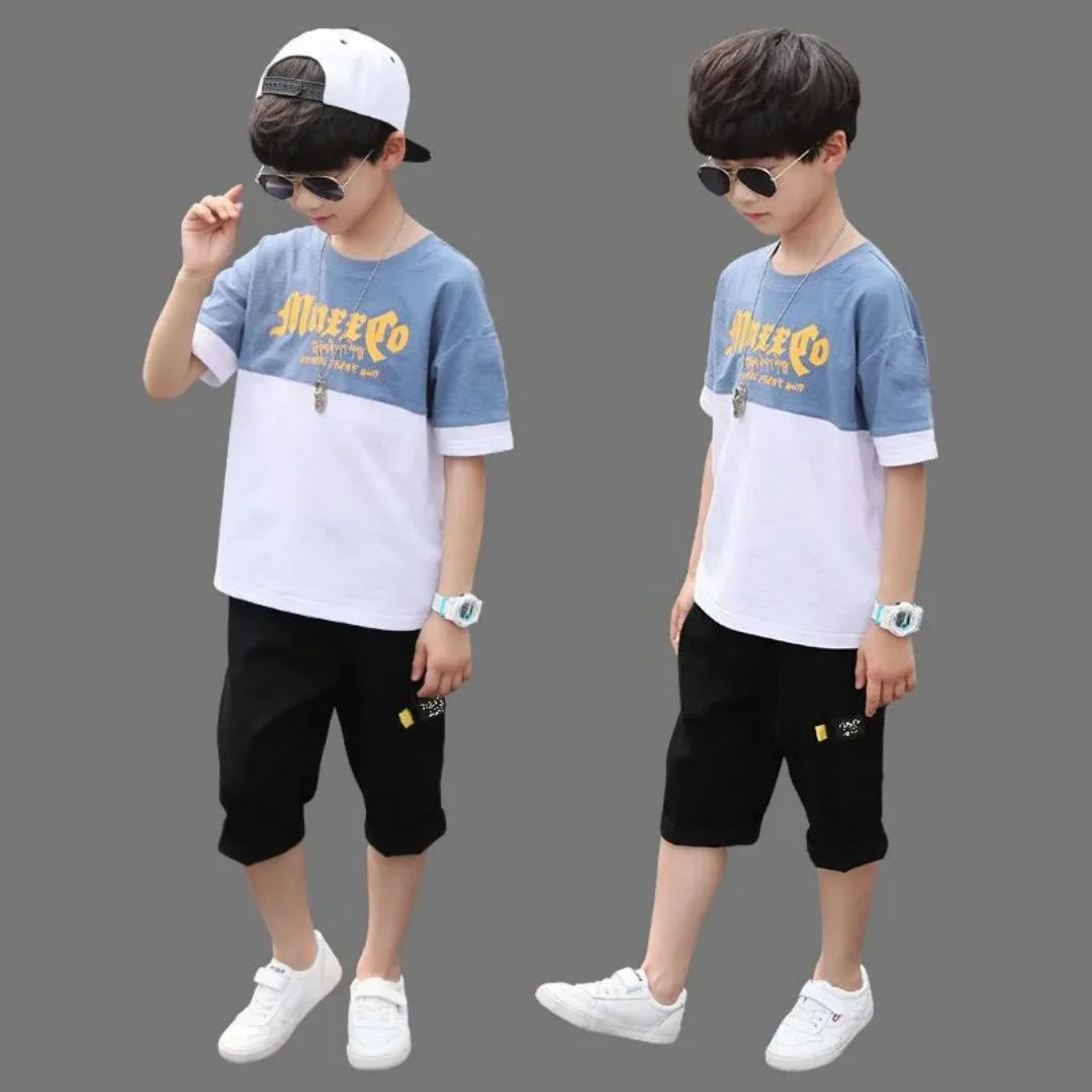 Summer and Spring 2025 Boys’ and Children’s Casual Sweat Absorbing Breathable Set T-shirt+Shorts Pants Children’s Sportswear You