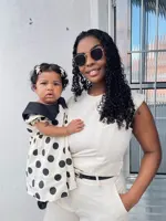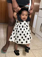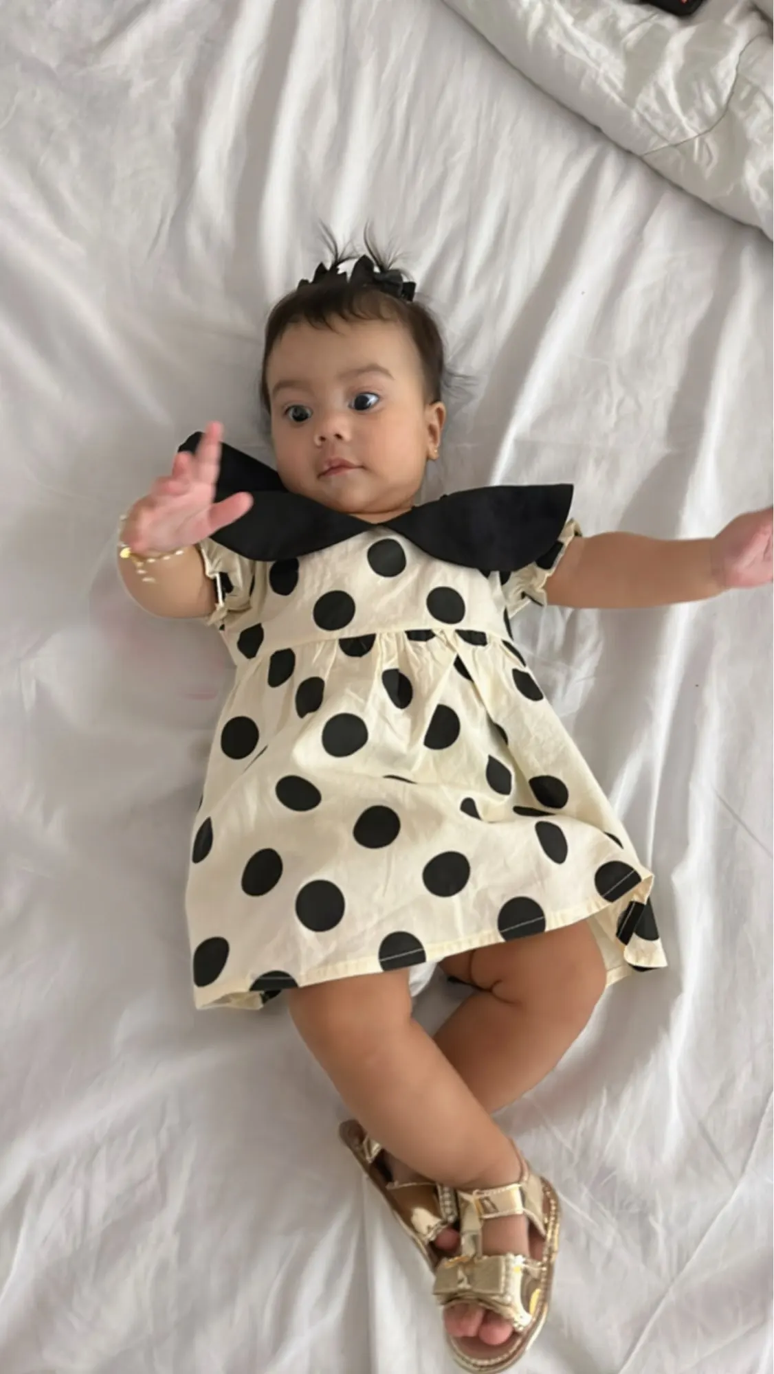 6 reviews for Summer baby girl dress baby girl color matching large lapel full of polka dot bubble sleeves princess dress