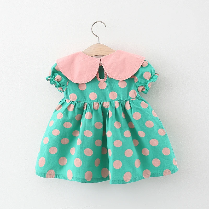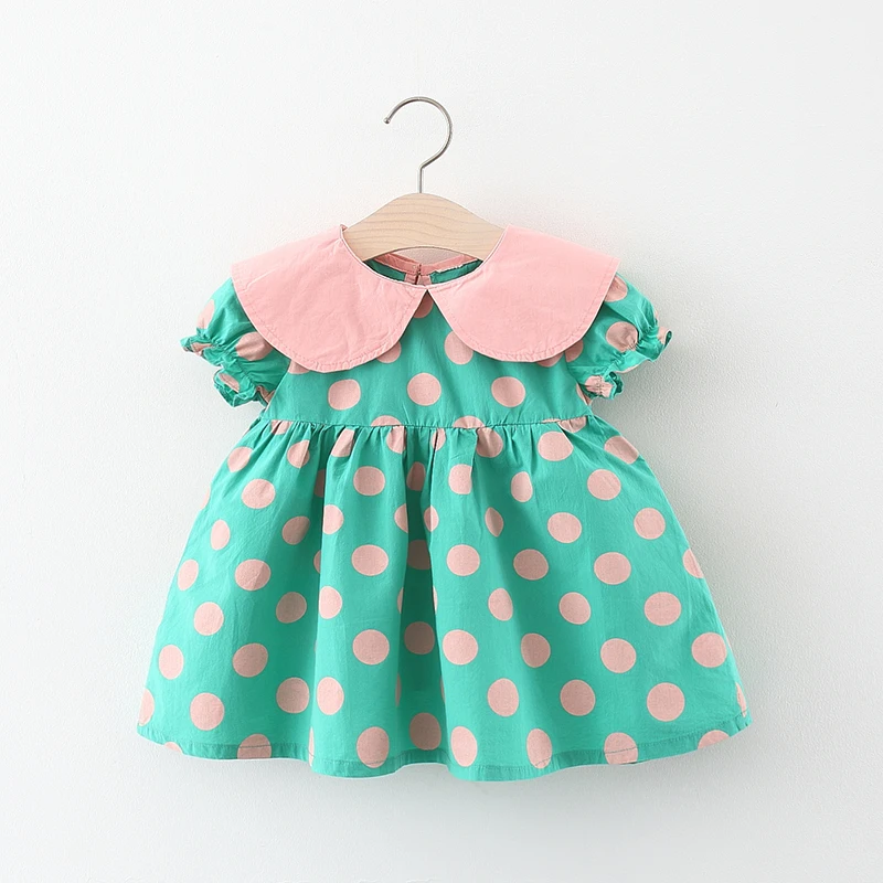 Summer baby girl dress baby girl color matching large lapel full of polka dot bubble sleeves princess dress
