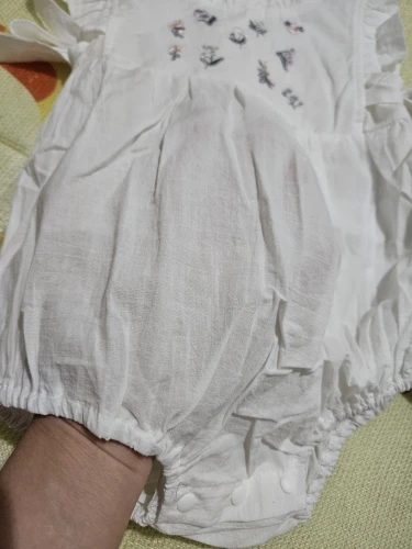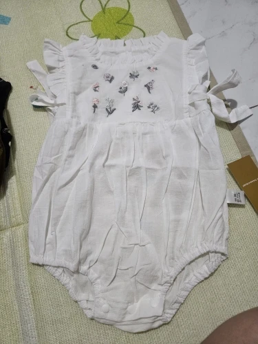 2 reviews for Summer baby girl sweet and cute embroidered floral side bow jumpsuit, baby girl sleeveless thin lace collar jumpsuit, suitable f