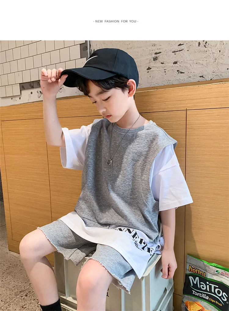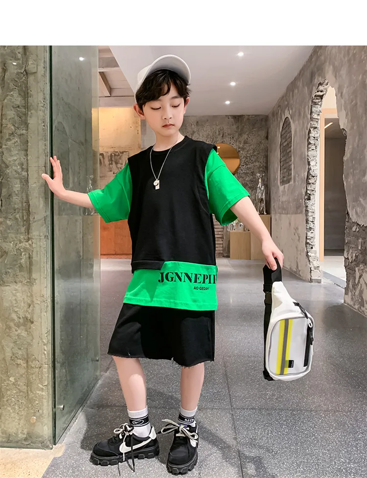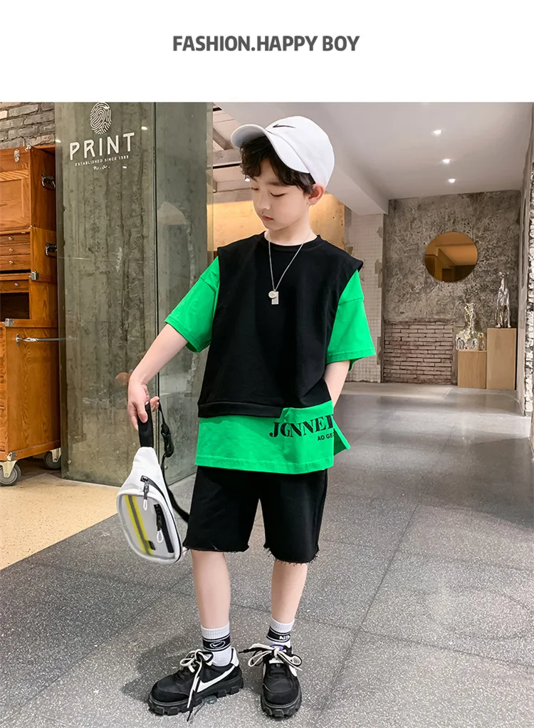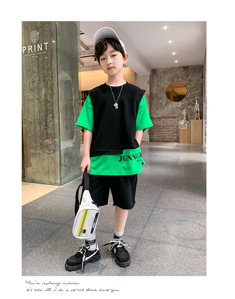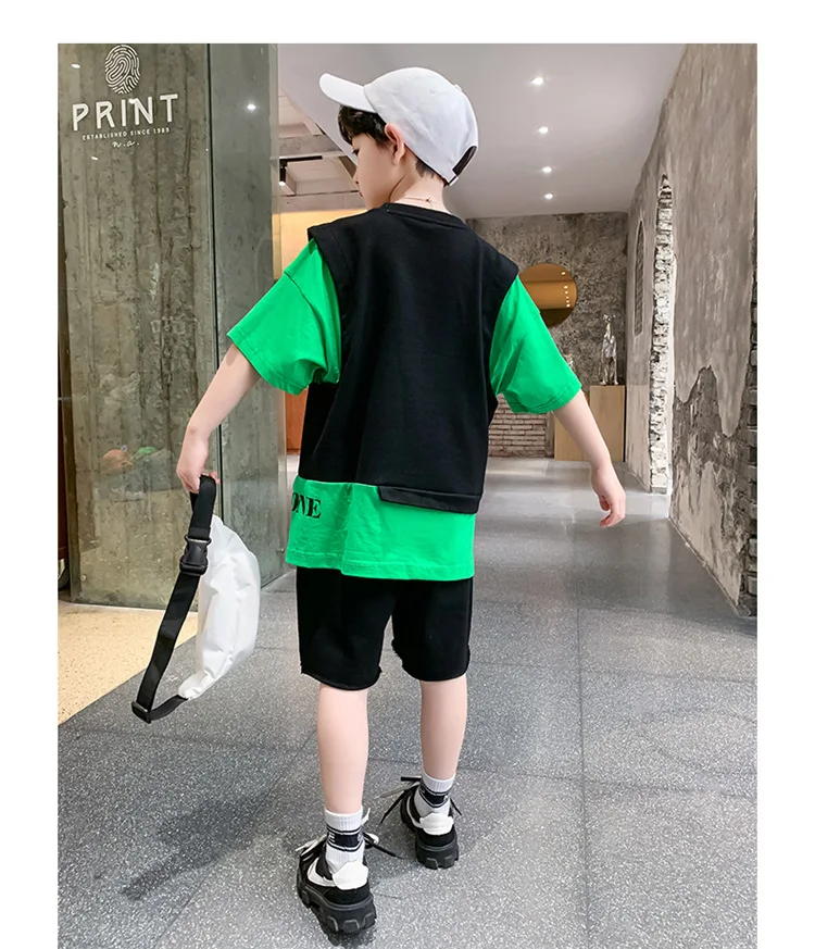 5 reviews for Summer Children Boy Clothes Set Kid Faux Two-piece Letterr Printed Tshirts and Shorts 2 Pieces Suit Teenage Top Bottom Outfits