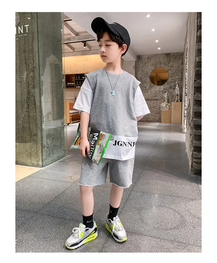 Summer Children Boy Clothes Set Kid Faux Two-piece Letterr Printed Tshirts and Shorts 2 Pieces Suit Teenage Top Bottom Outfits