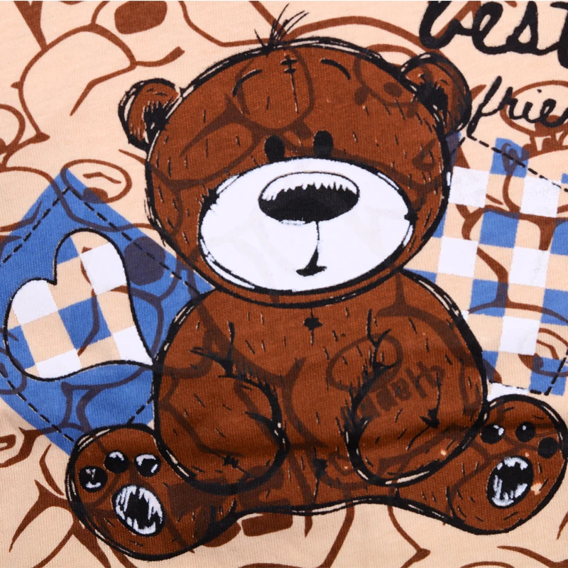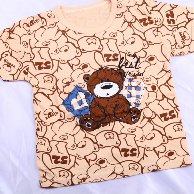 Summer Children Boys’ Short Sleeved Suit Cartoon Bear Printing Cotton Short Sleeved Top +Shorts 2pcs Set Boy Kids Pyjamas Suit