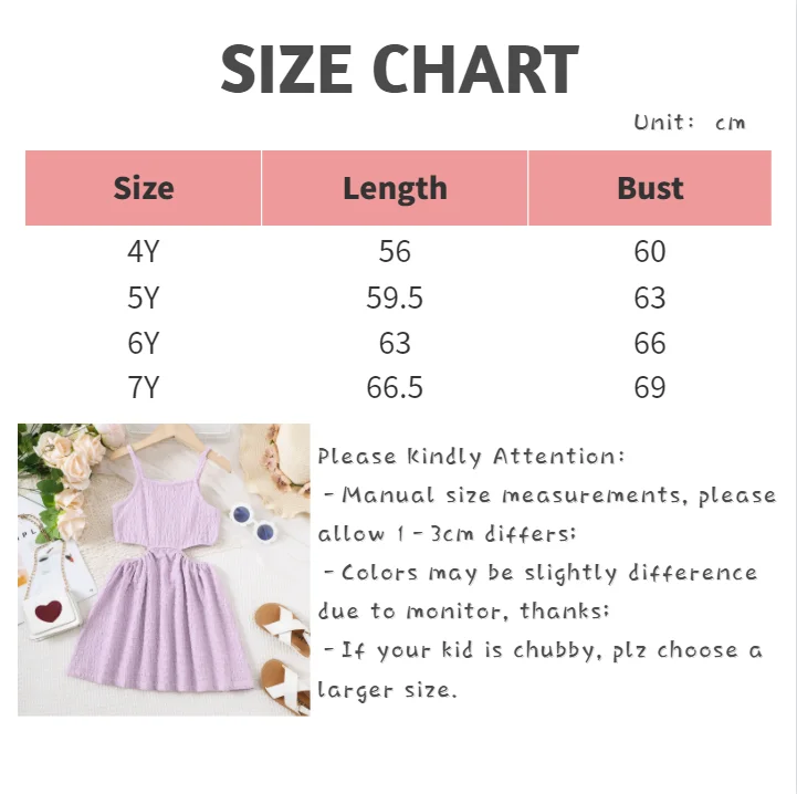 3 reviews for Summer Children Girl Princess Dress Solid Color Slip Hollow Waist Dresses Sweet Birthday Party Clothing for Kids Girl 4-7 Years
