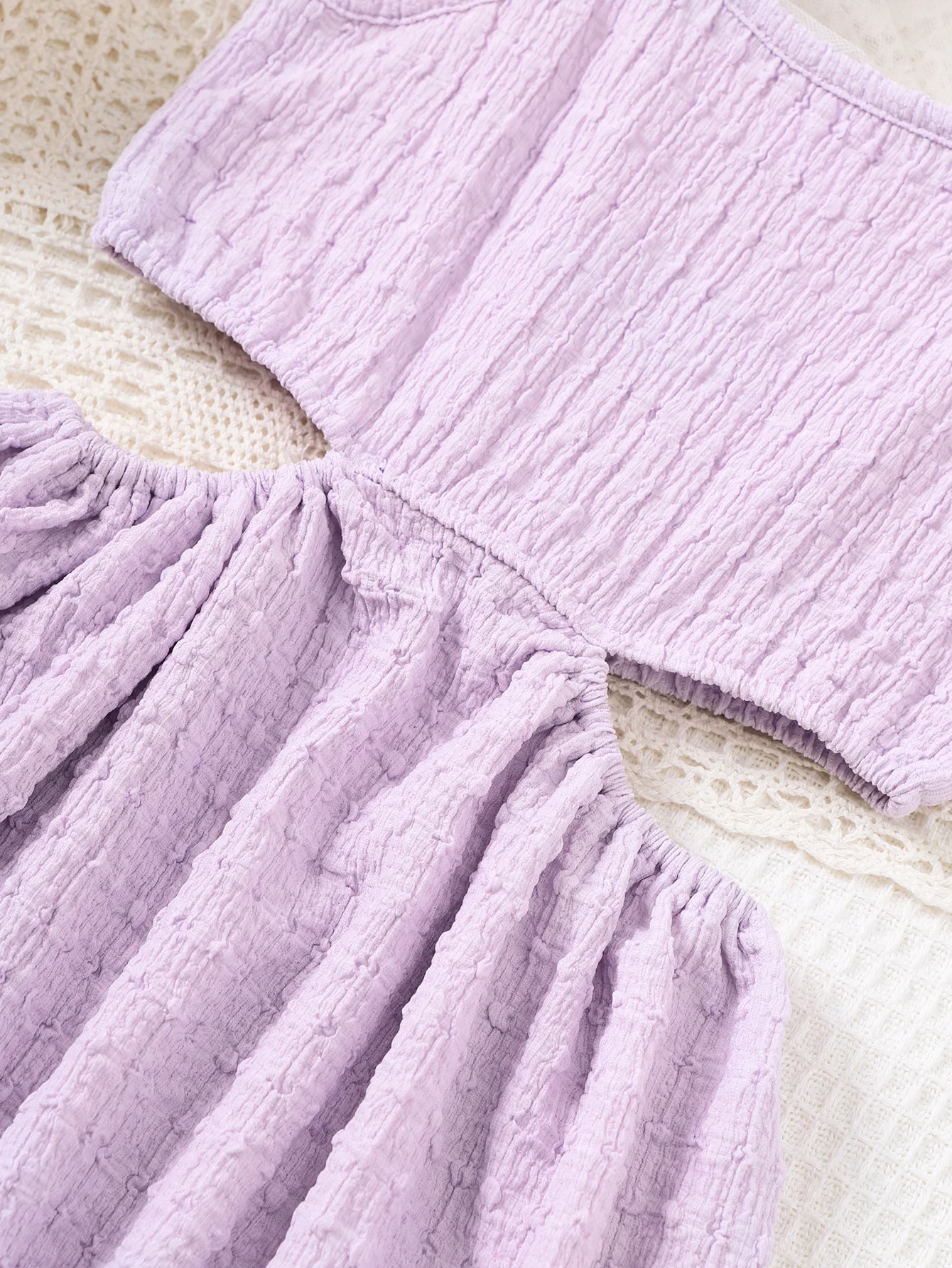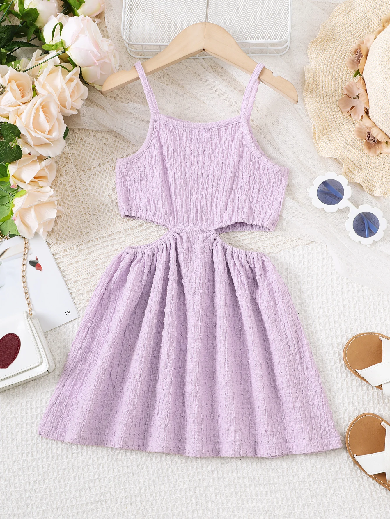 Summer Children Girl Princess Dress Solid Color Slip Hollow Waist Dresses Sweet Birthday Party Clothing for Kids Girl 4-7 Years