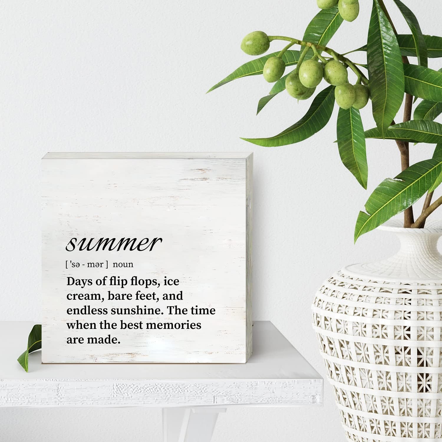 Summer Definition Wood Box Sign Home Decor Rustic Summer Wooden Box Sign Block Plaque for Wall Tabletop Desk Decoration