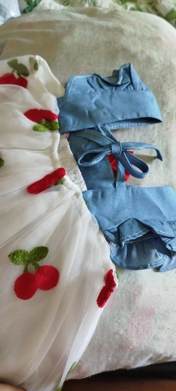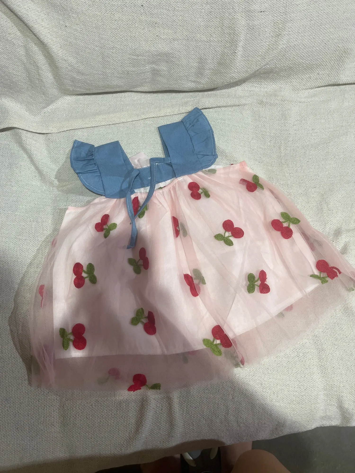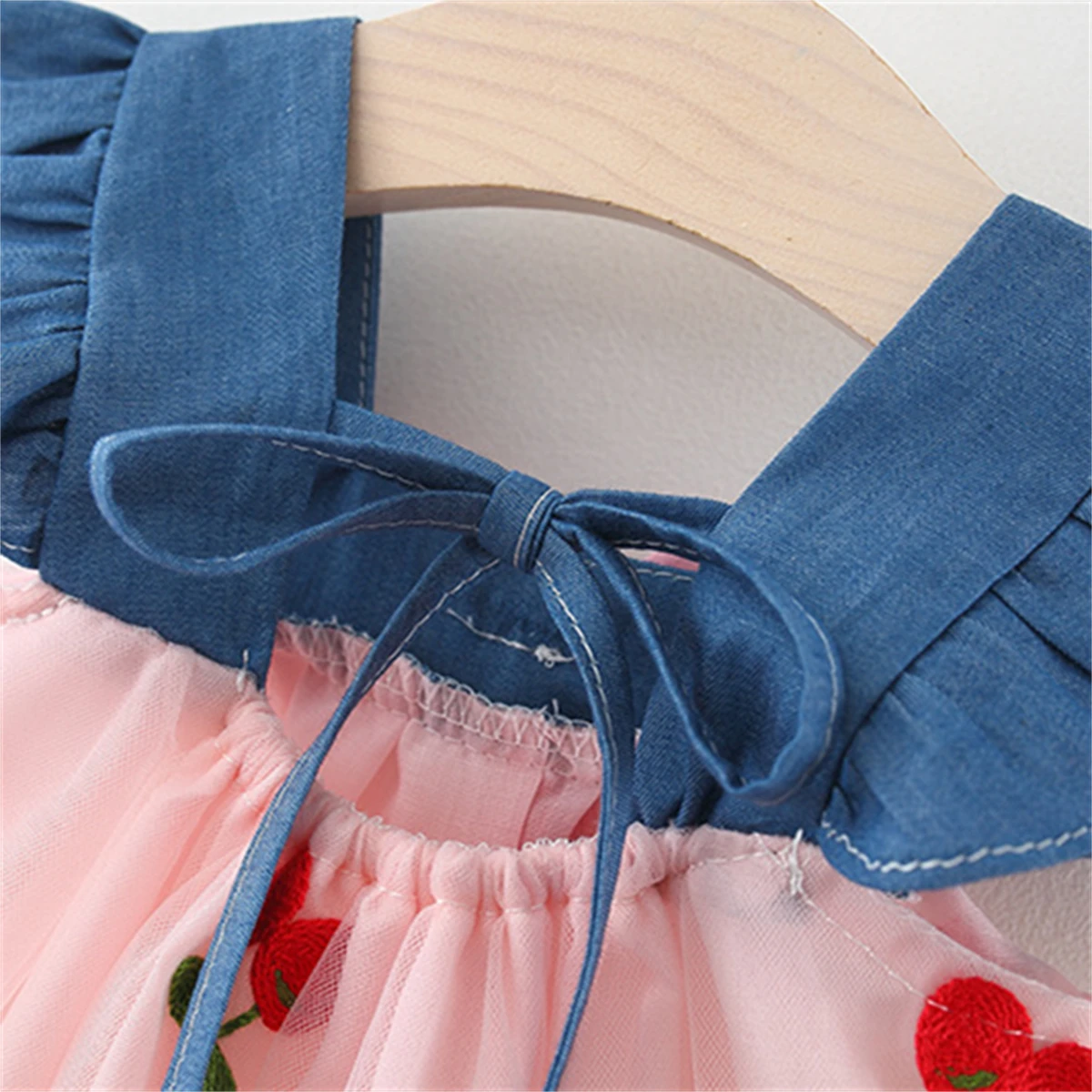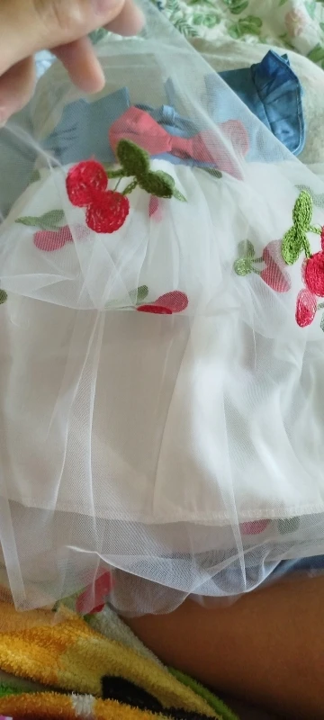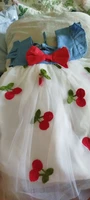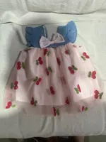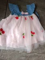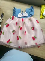 14 reviews for Summer Girl Dress Denim Fly Sleeved Bow Cute Cherry Colored Mesh Princess Dress Suitable for Babies Aged 0-3