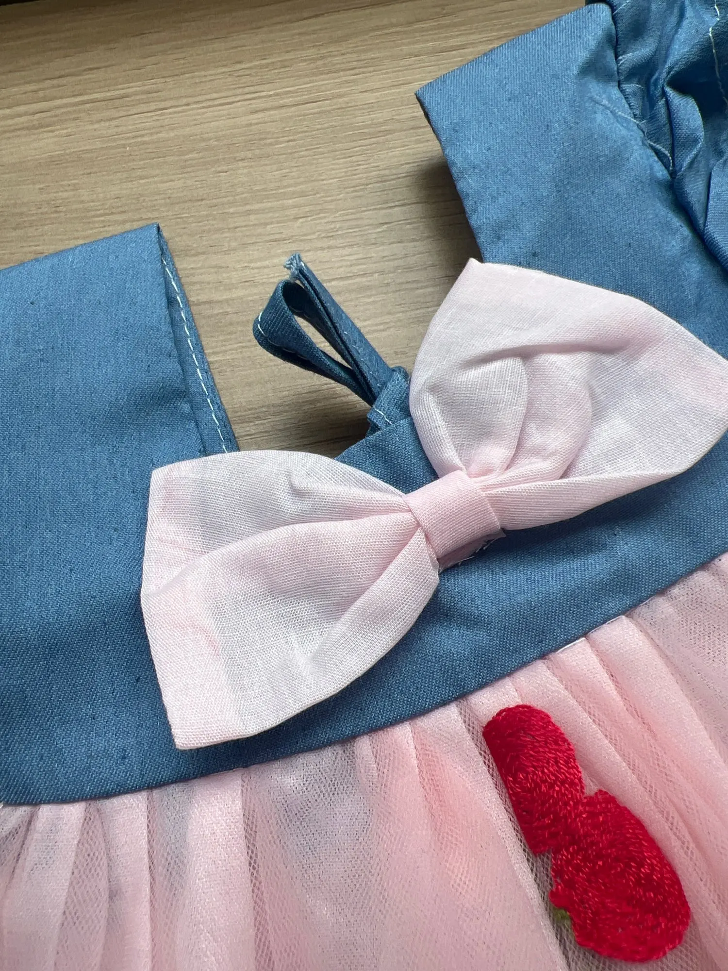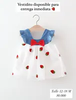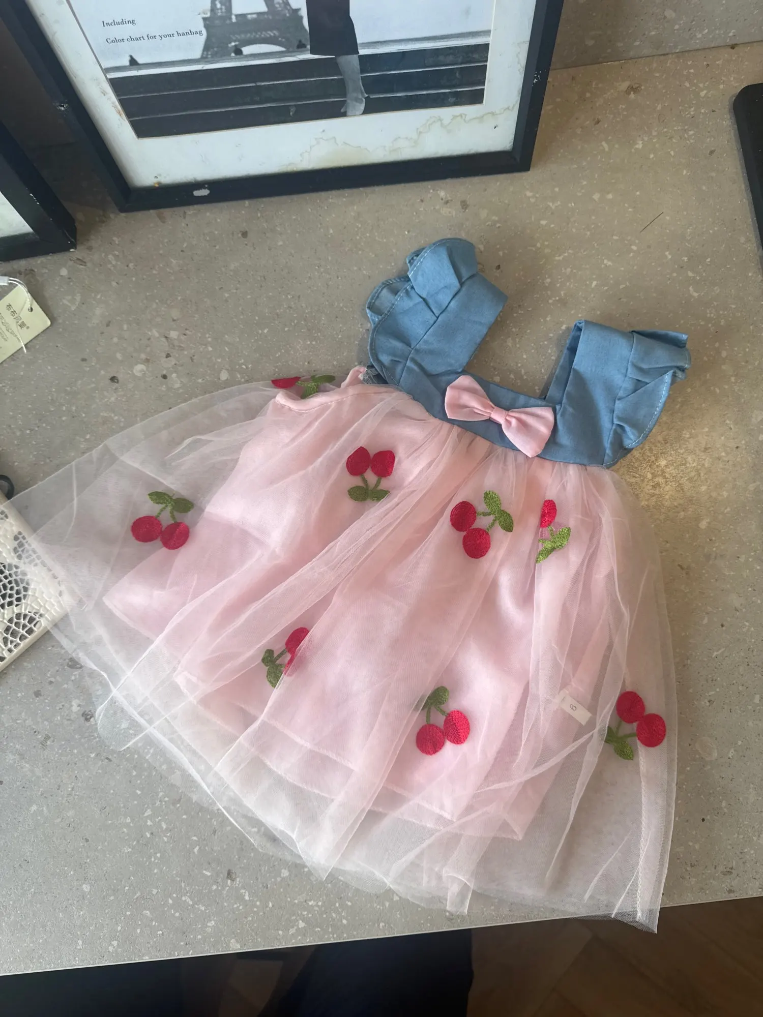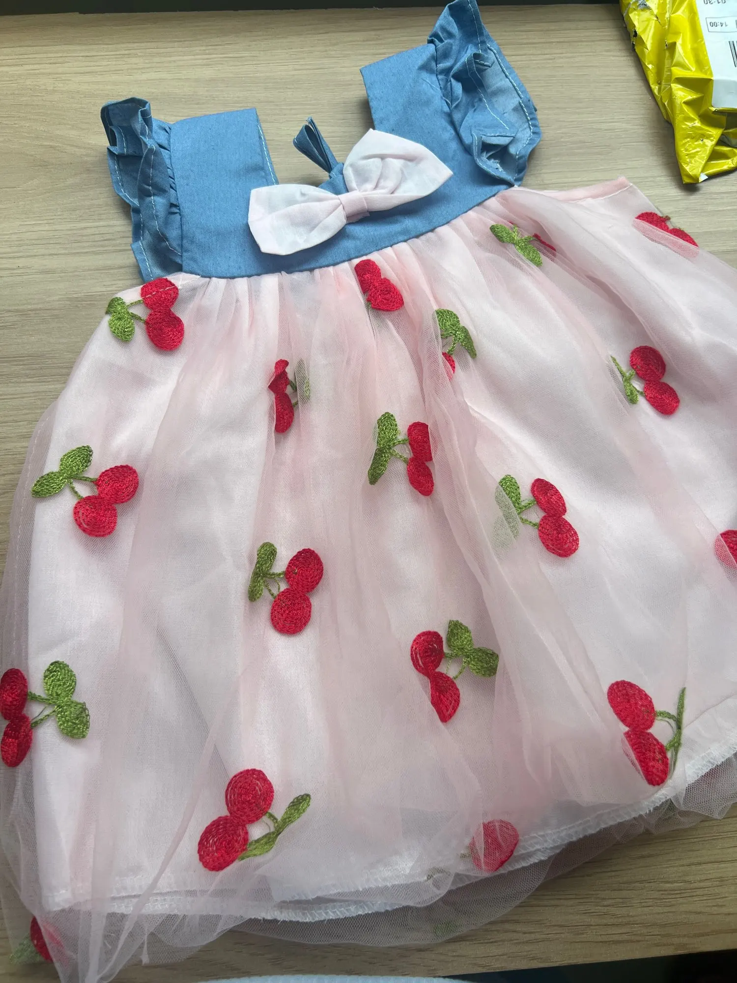 14 reviews for Summer Girl Dress Denim Fly Sleeved Bow Cute Cherry Colored Mesh Princess Dress Suitable for Babies Aged 0-3