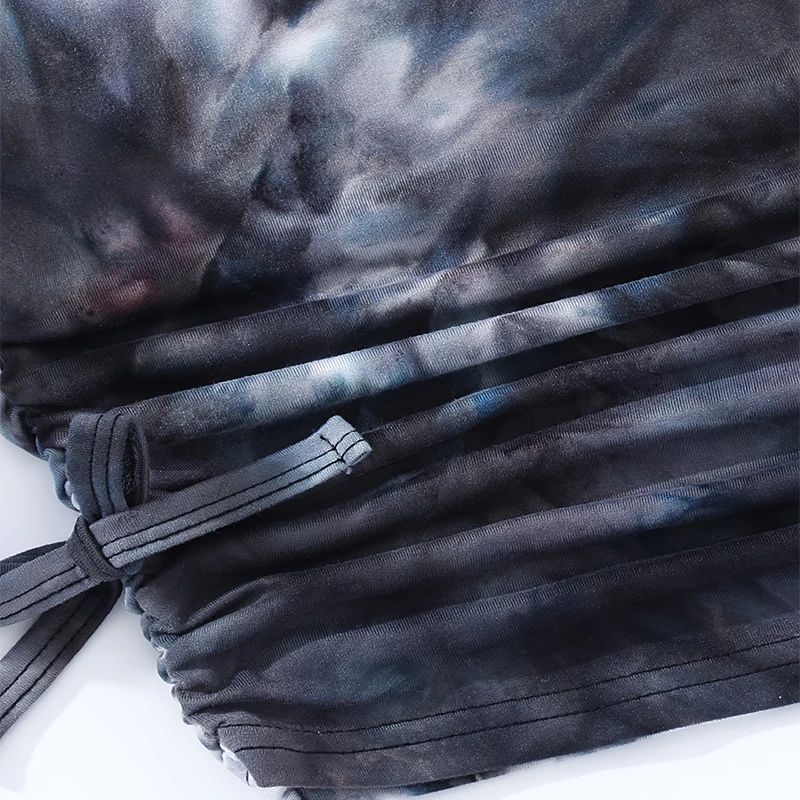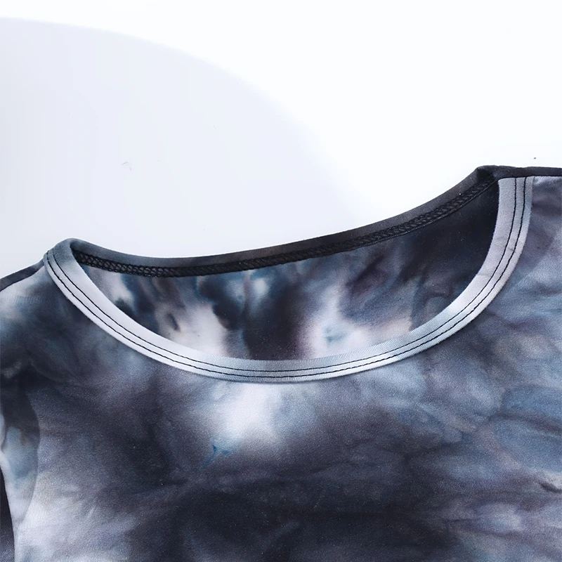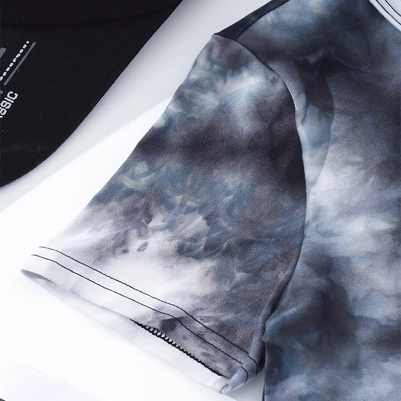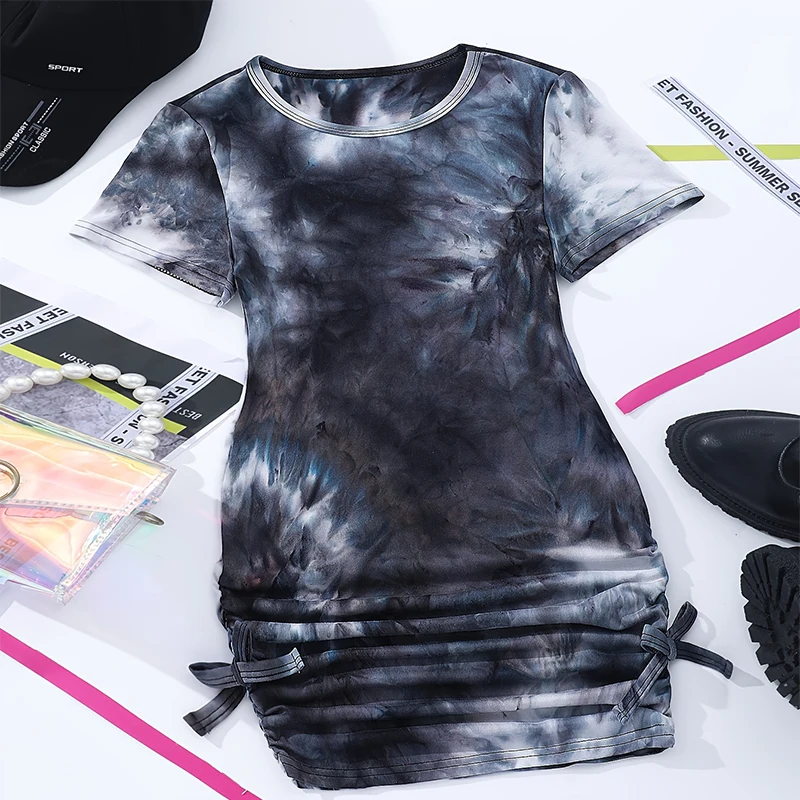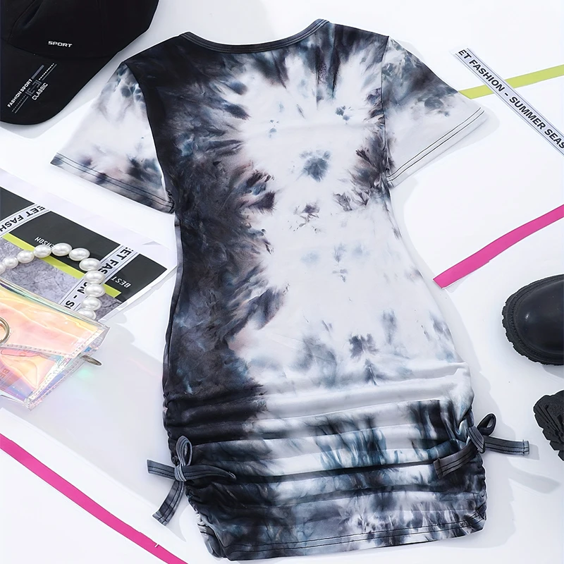 Summer Girls Cute, Cool, Breathable Round Neck Short Sleeve Tie Dyed Black And White Dress Princess Daily Leisure Party Dress