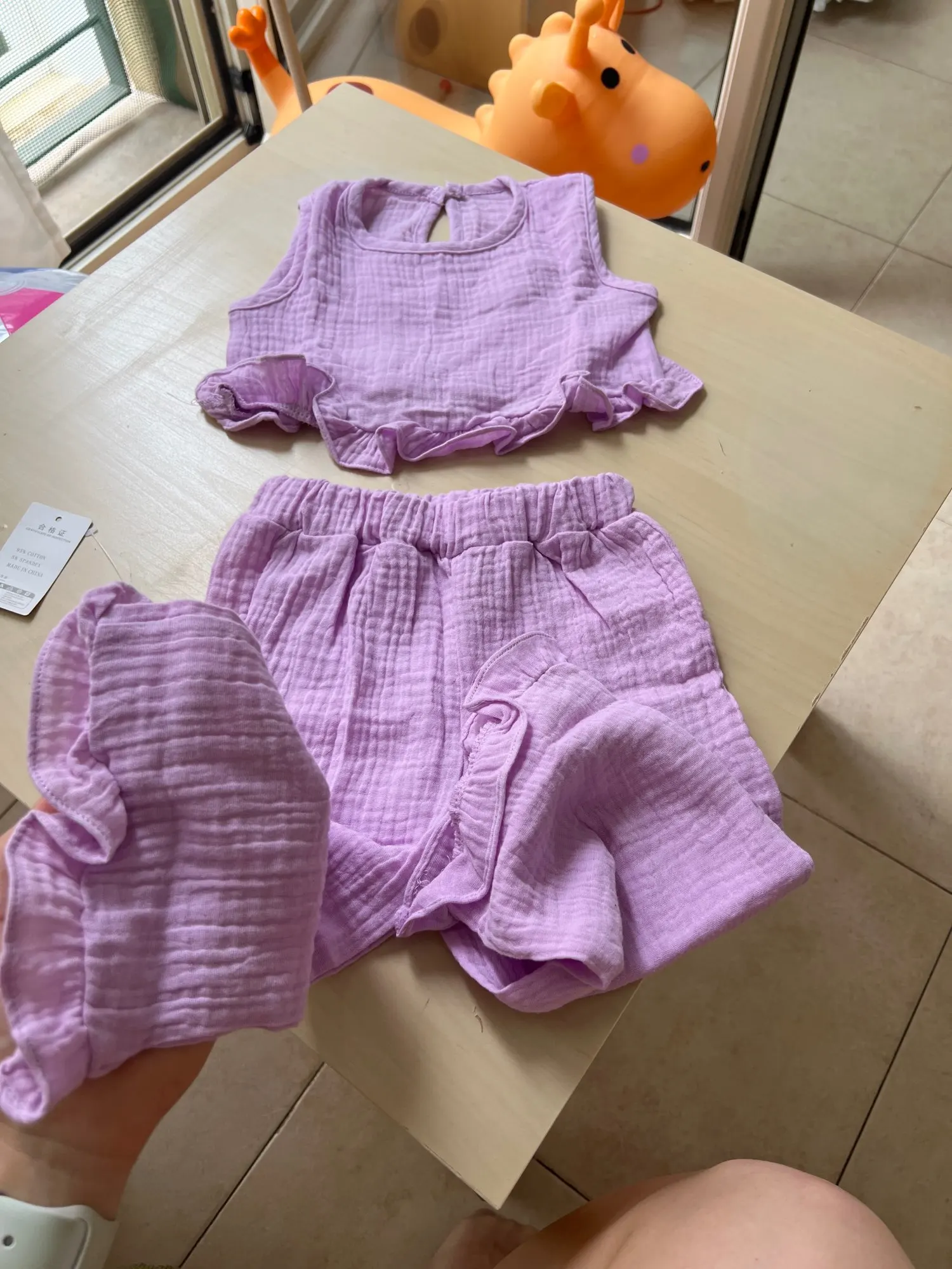 17 reviews for Summer Kids Cotton Casual 2pcs Toddler Girls Solid Color Sleeveless Top + Ruffle Pants Set Comfortable Fashion Hot Sale