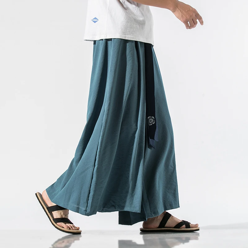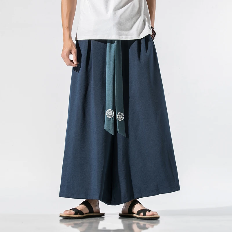 Summer Men Wide Leg Pants Mens Cotton Linen Retro Trousers Man Chinese Style Hanfu Pants Male Big Crotch Nepal Robe Pants