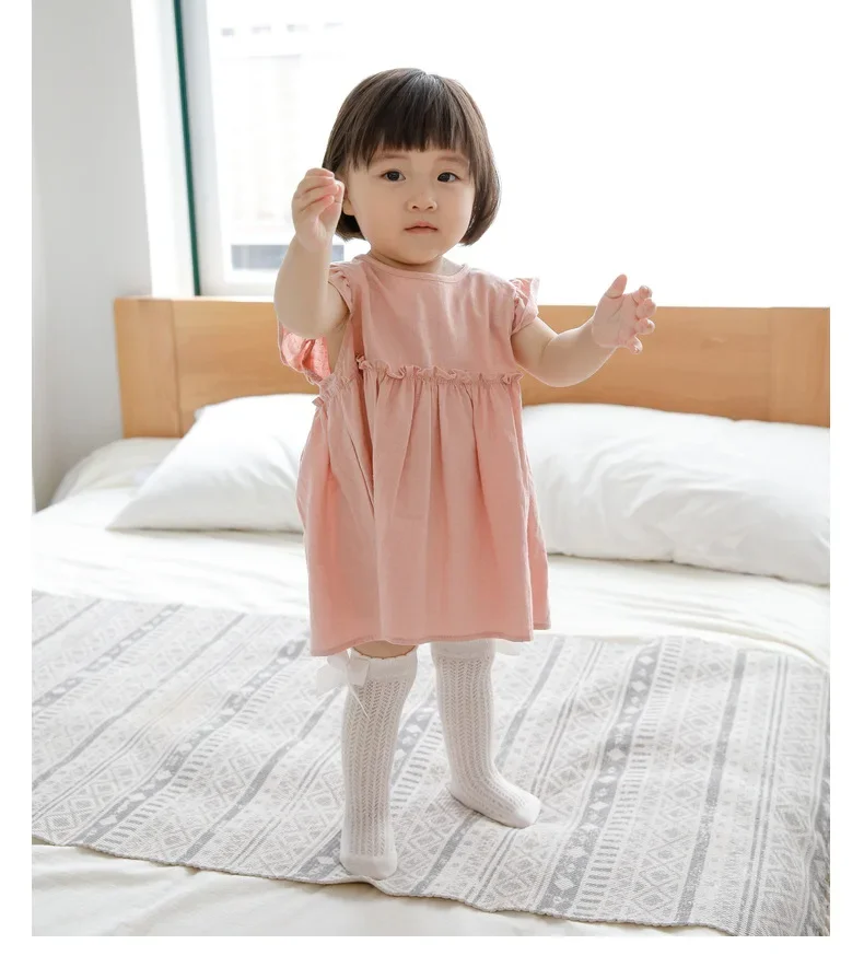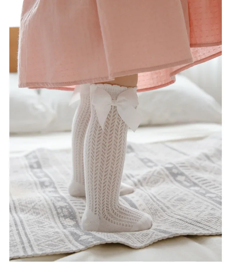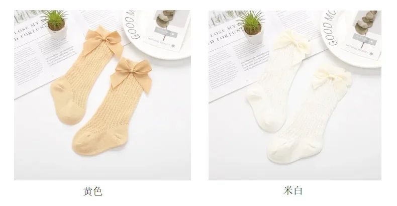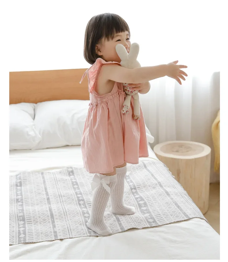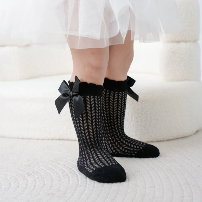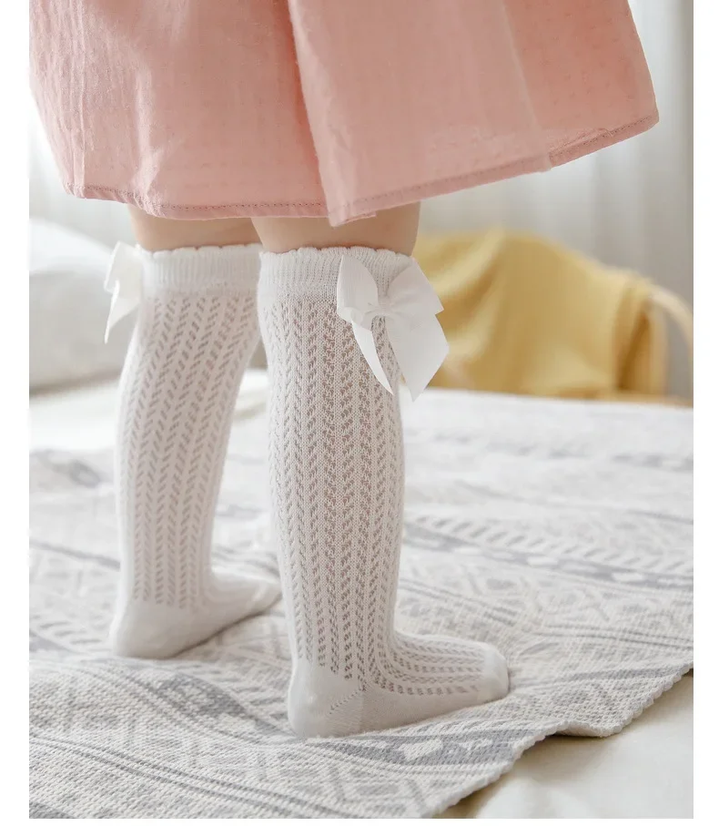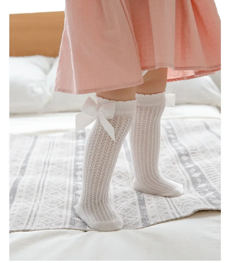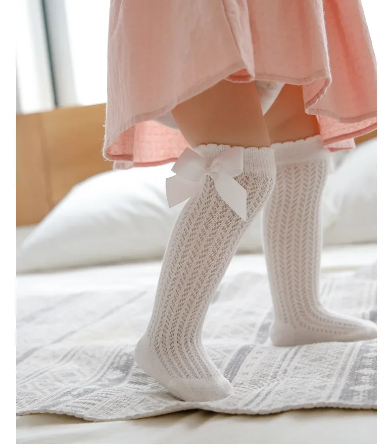 Summer Mesh Baby Girls Socks Cute Big Bows Soft Cotton Elastic White Red Newborn Stockings Knee High Long for Toddler Socks