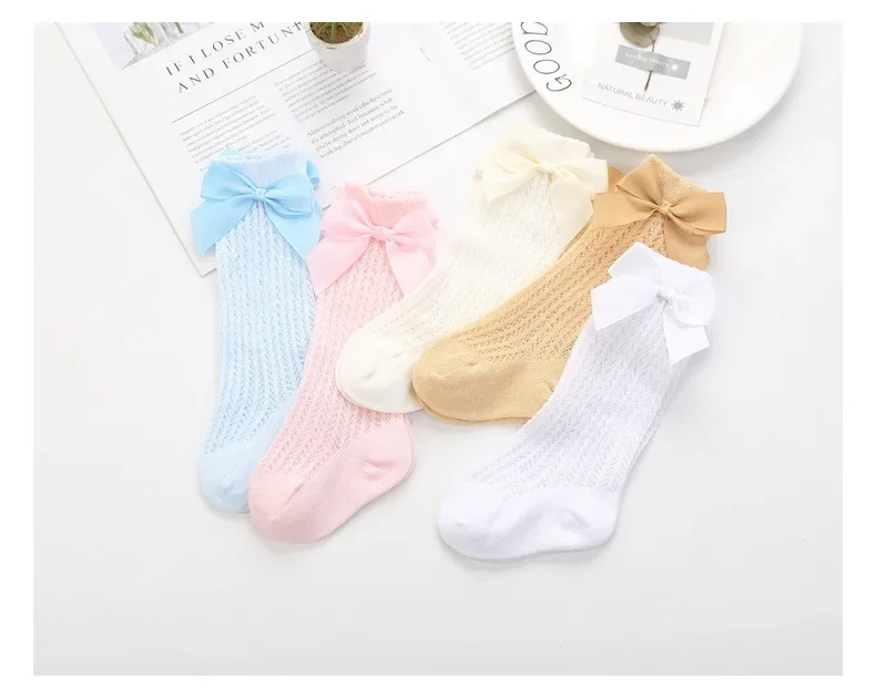 5 reviews for Summer Mesh Baby Girls Socks Cute Big Bows Soft Cotton Elastic White Red Newborn Stockings Knee High Long for Toddler Socks