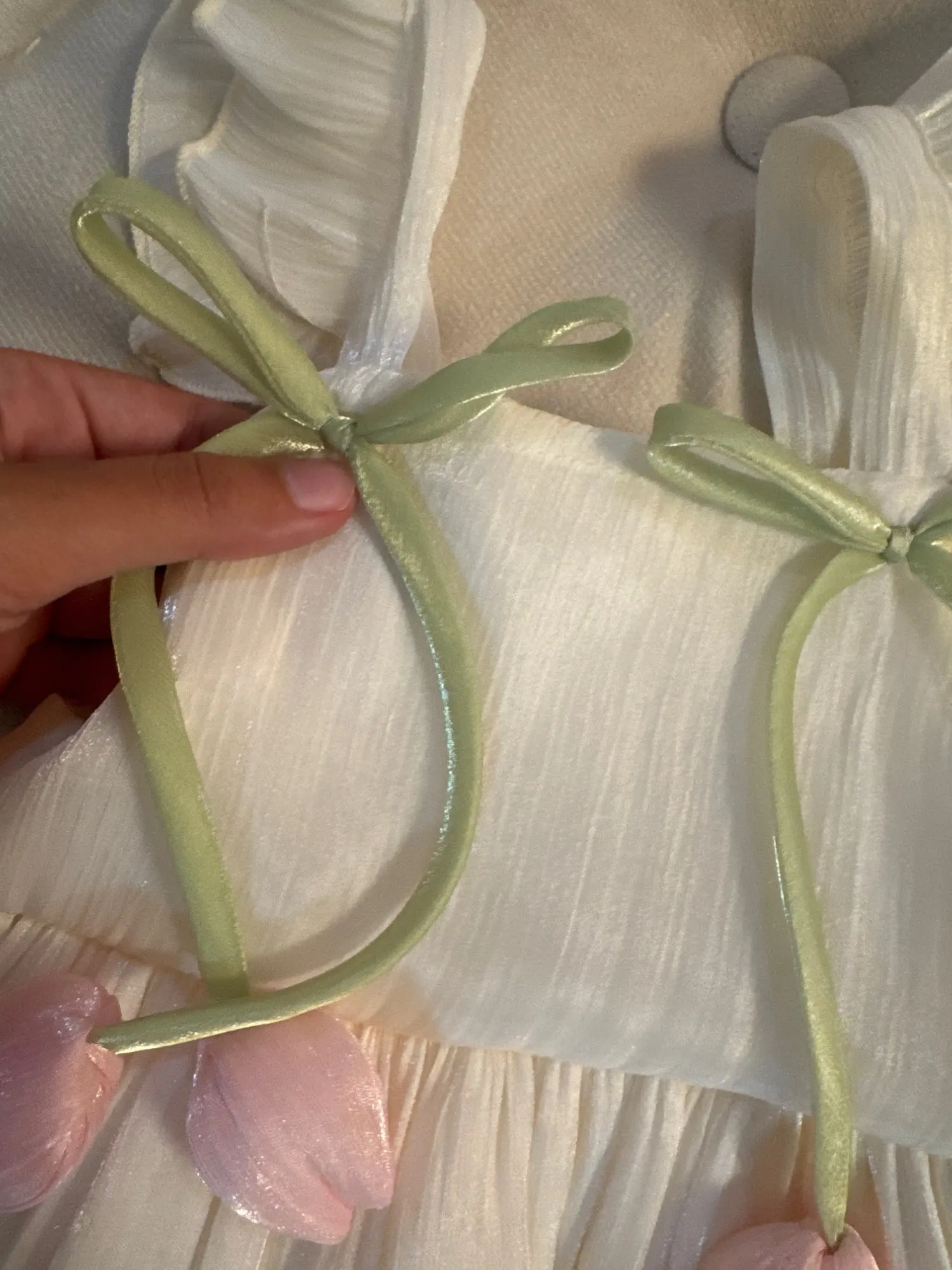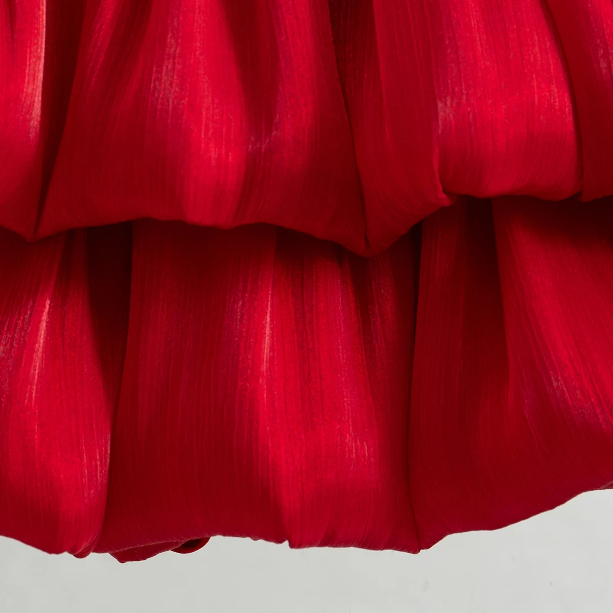 The dress is too beautiful. Very well done and well finished. It has a light shine on the fabric, I didn’t notice it, but I liked it.