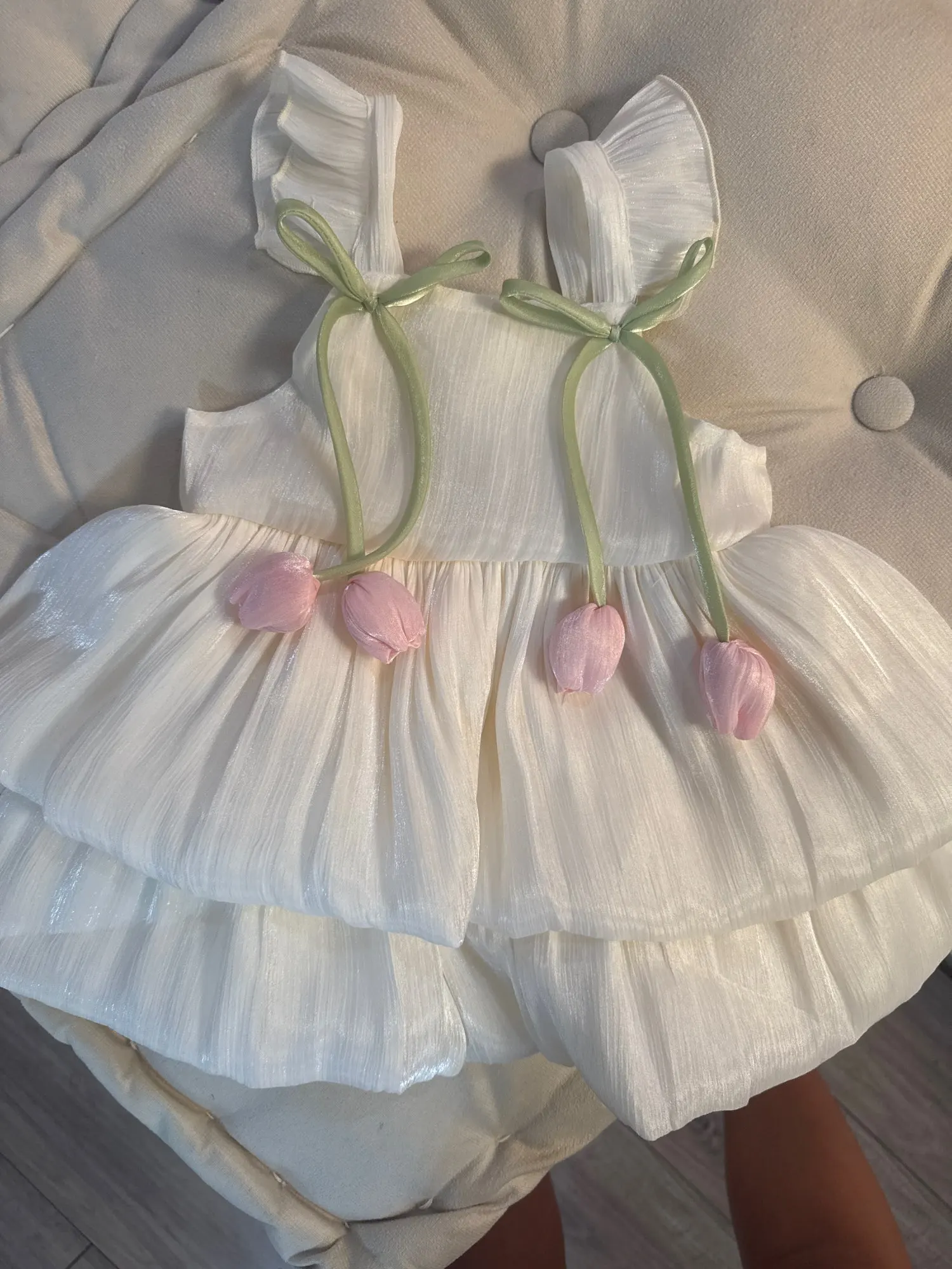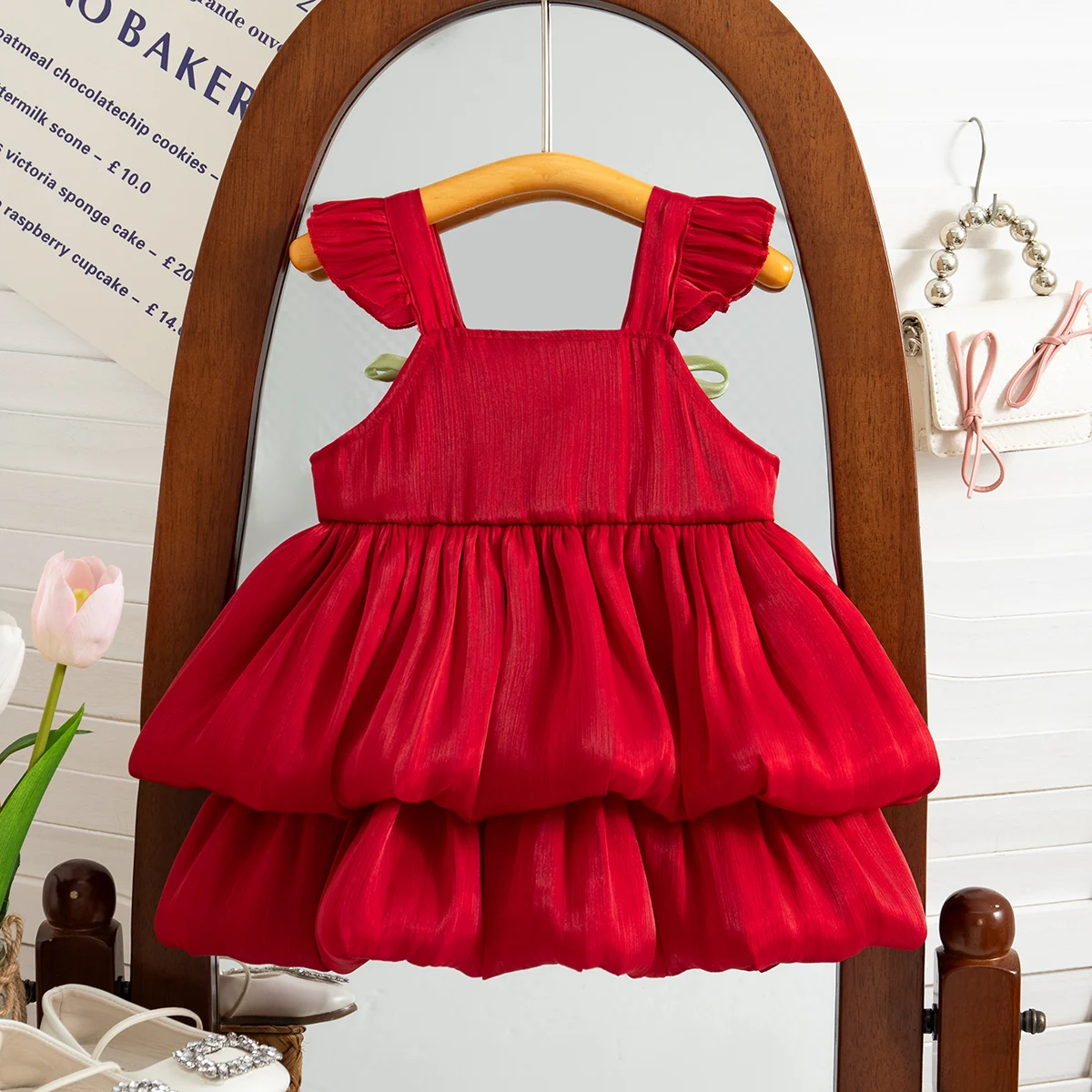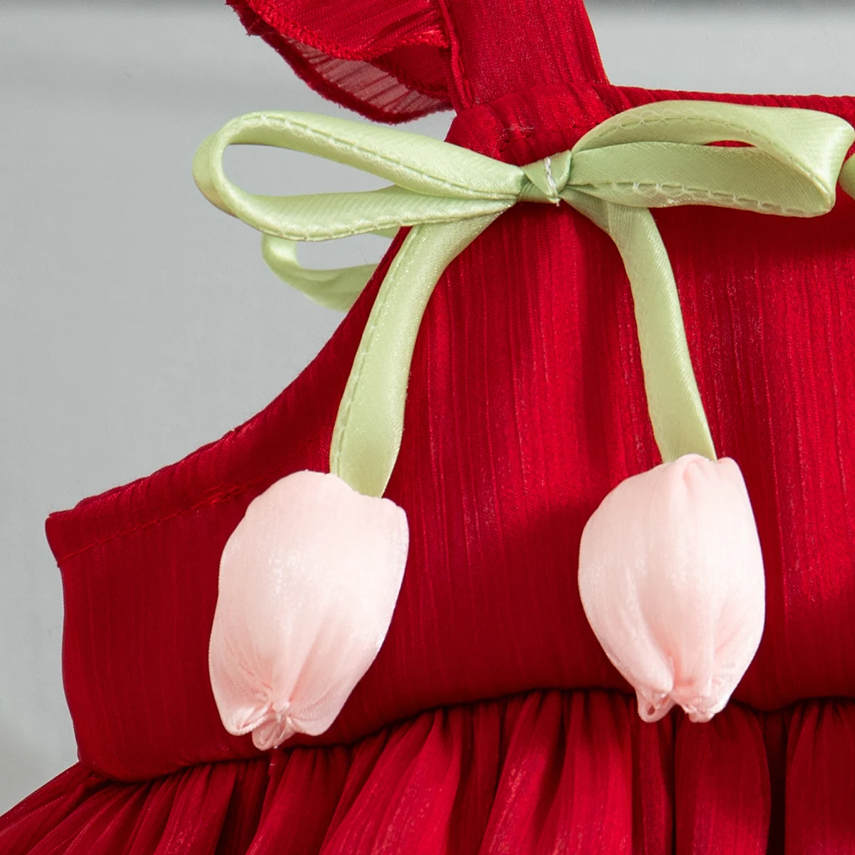 Summer New Style Two Tulip Suspender Flower Bud Skirt For Girls Aged 0-3 Double Layered Flying Sleeve Solid Color Dress