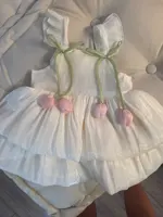 6 reviews for Summer New Style Two Tulip Suspender Flower Bud Skirt For Girls Aged 0-3 Double Layered Flying Sleeve Solid Color Dress