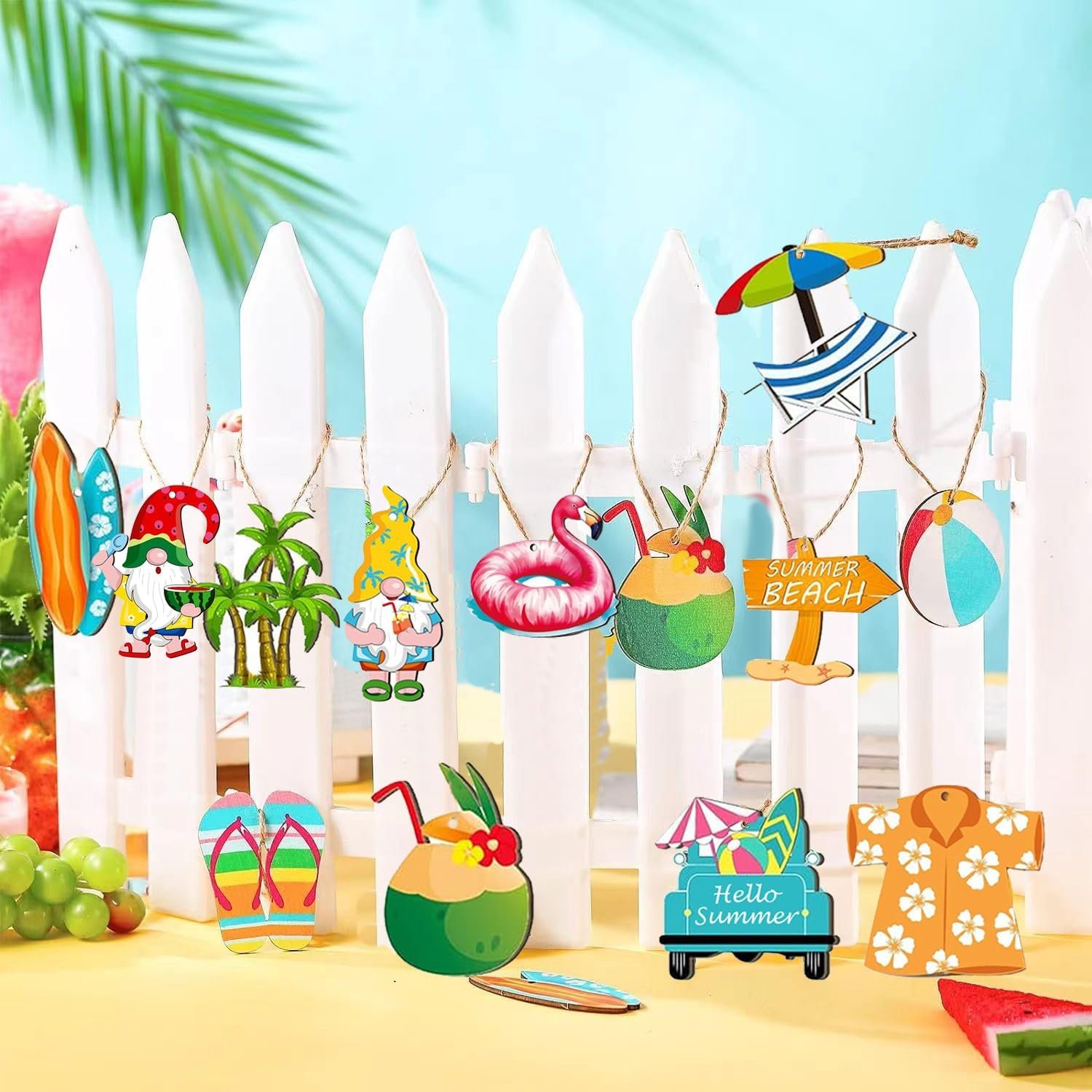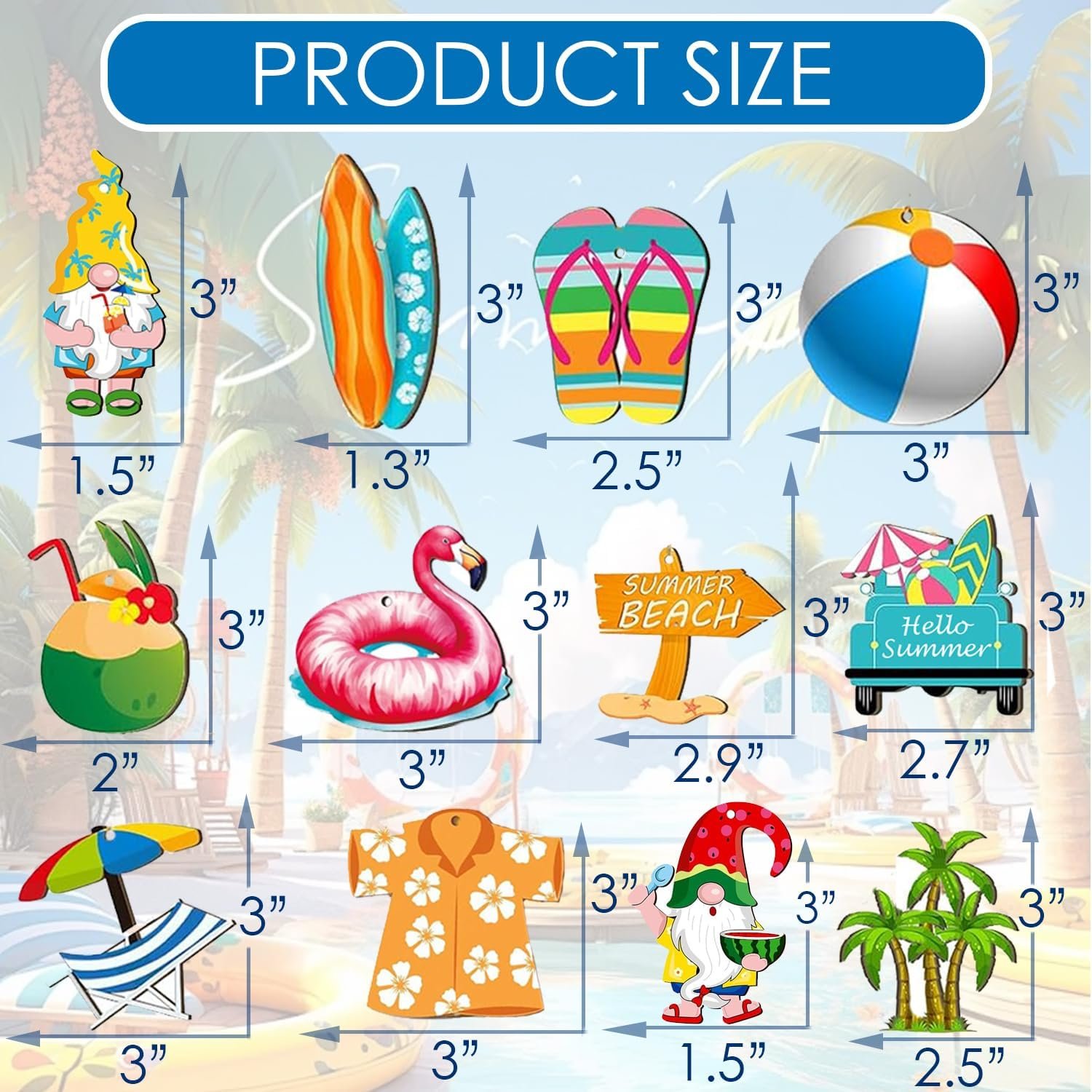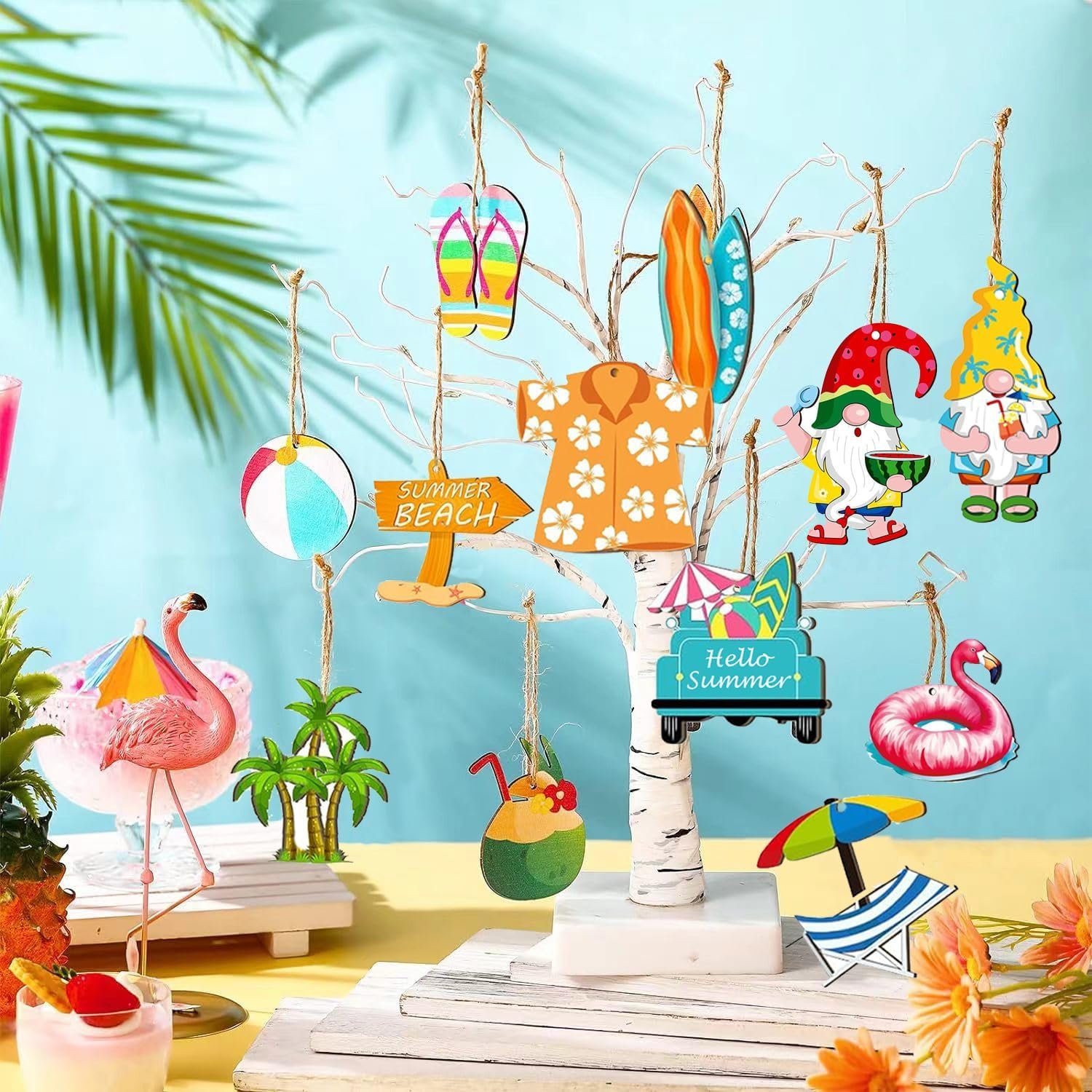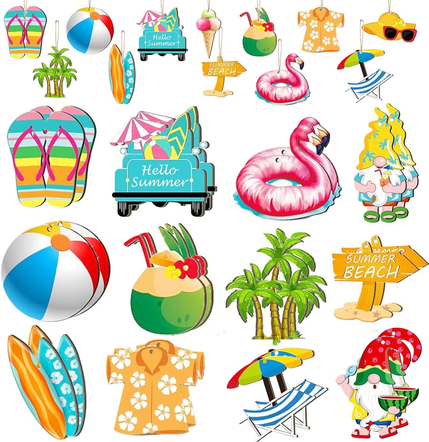 WHAT YOU’LL GET – You’ll receive 24 PCS summer tree ornaments wooden full of summer elements! Including Surfboards, slippers, swim rings, coconut trees, ice cream, beach volleyball, and chairs, etc. These summer ornaments decorations are not just decorations; they’re mood-setters, adding a summer touch to your home or party. Elevate your space with Hawaiian elements and create unforgettable memories this Summer!