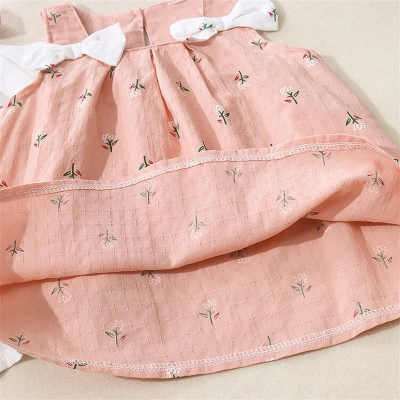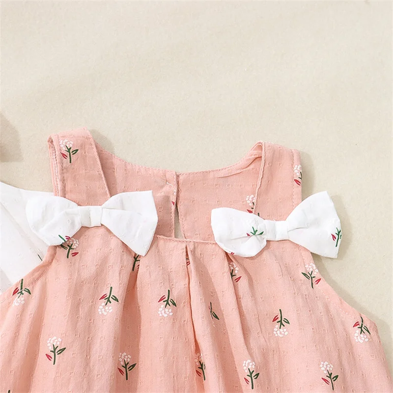 Summer Simple Solid Color Flower Baby Girl Dress Sleeveless Bowknot Children’s Clothes Thin Breathable 0 To 3 Years Old Toddler