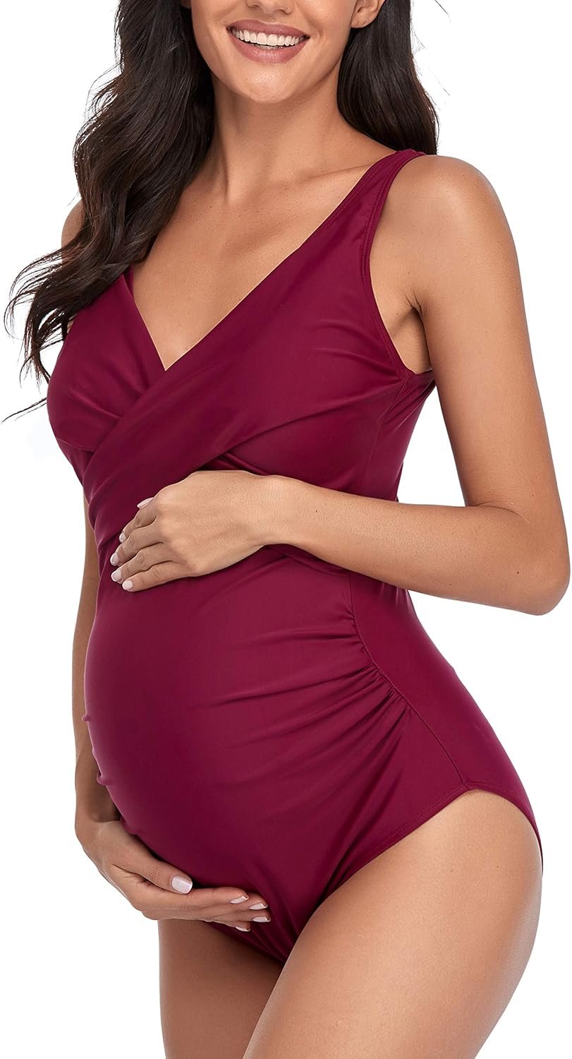 SUMMERSUNSHINE Maternity One Piece Swimwear Front Cross Pregnancy Swimsuit Bathing Suit Maternity Bikini