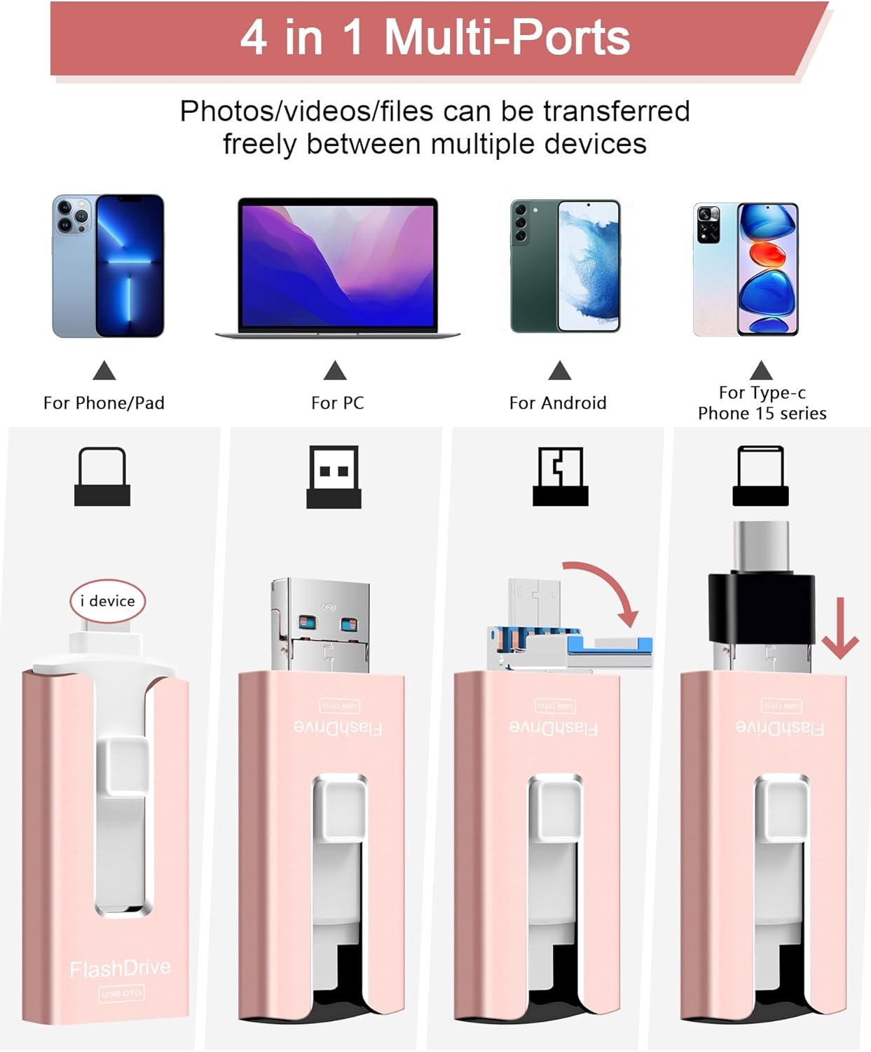 【High transfer speed】: Transfer photos, videos, and files in seconds with our USB stick. With a write speed of up to 80 MB/s and a read speed of up to 40 MB/s, our flash drive for phone have higher performance than conventional usb storage flash drive. Save time and get more done with phone photo storage stick. (Tip: Phone/Pad needs to download “LUV-Share” APP from APP Store when using memory stick; Android phone no need to download APP).