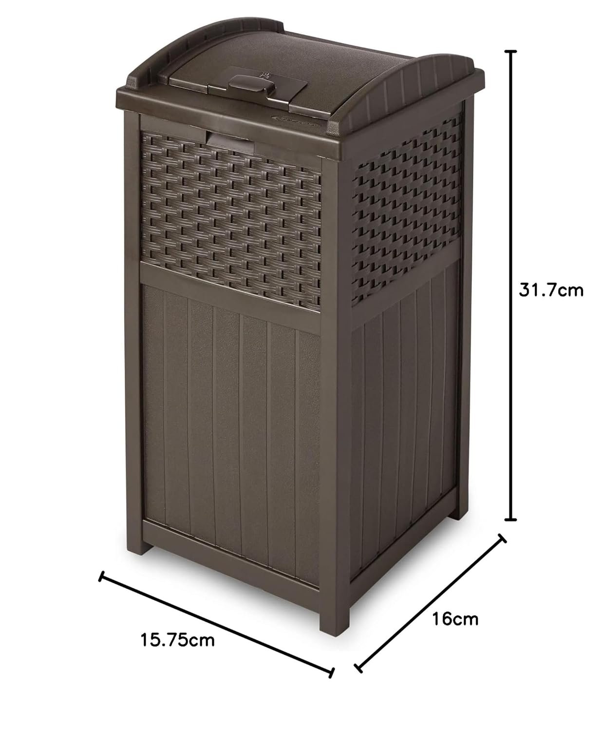 Outdoor Patio Trash Can: Features a decorative wicker-style design for a stylish addition to your outdoor space; Greatly blends in your garden, backyard, or garage without being unsightly
